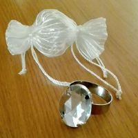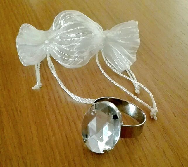 Descrizione:Sei portatovaglioli ad anello, in metallo color argento e con un grande strass, che si possono usare anche come segnaposto. Nuovi, mai usati e conservati ciascuno in una custodia in tessuto, chiusa con laccetti.
