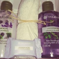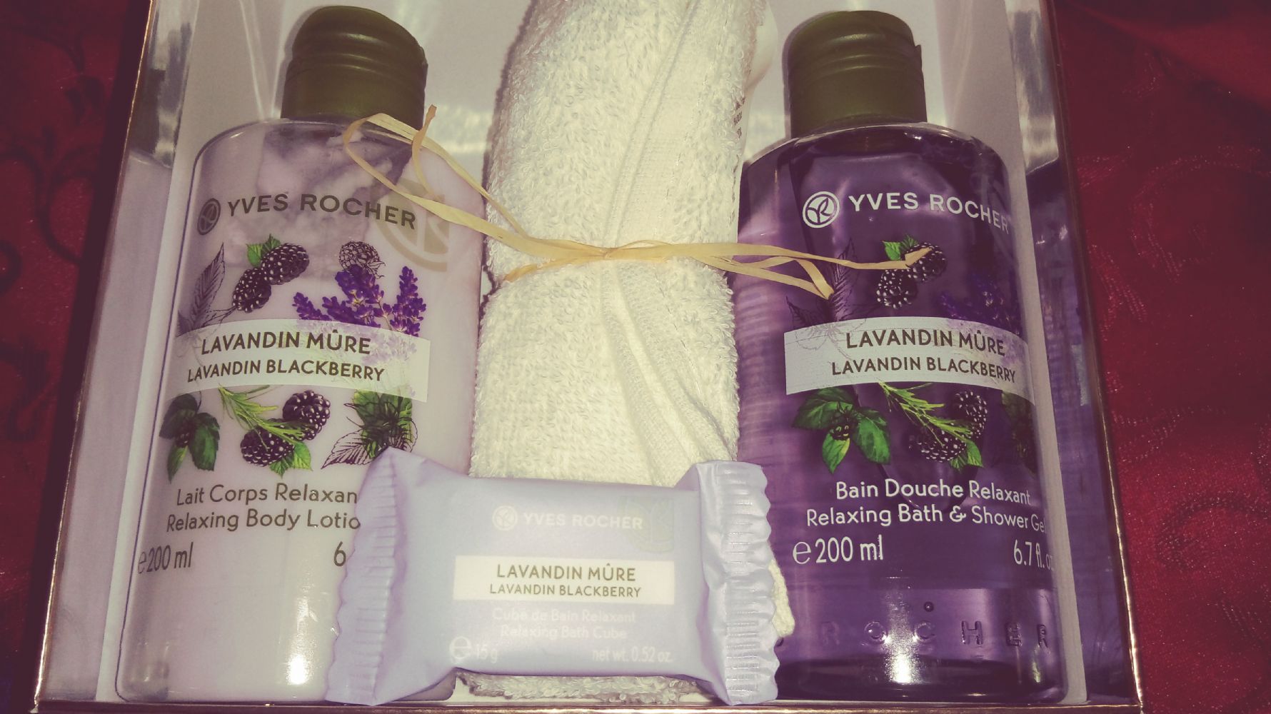 Descrizione:Confezione regalo Yves Rocher con scatolina dorara, contiene un piccolo asciugamano viso, Bagno Doccia a Lavandina e Mora, Latte Corpo a Lavandina e Mora e Pastihlia da Bagno a Lavandina e Mora.