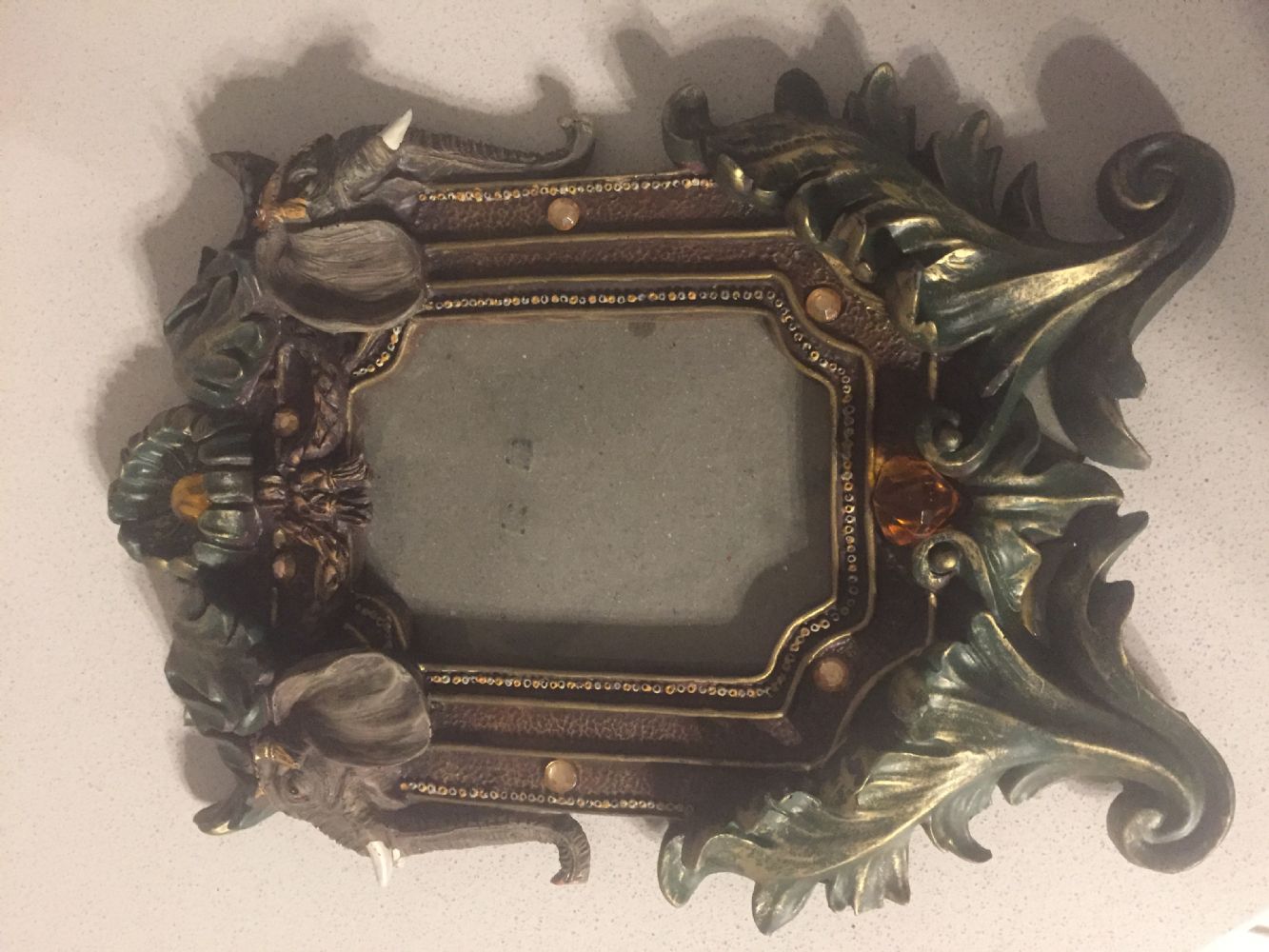 Descrizione:Cornice da tavolo, molto originale. Con elefanti.