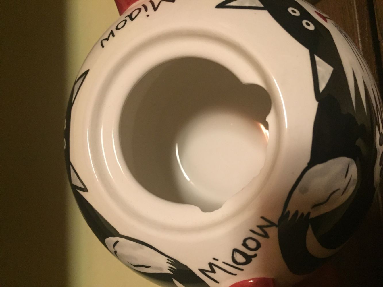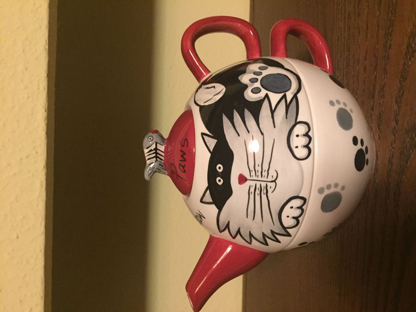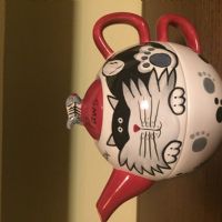 Descrizione:Bellissima tazza più teiera. Con coperchio. Mai usata. Era fallata ed e’ Sbeccata nel punto interno in cui appoggia il coperchio (vedi foto), ma non ne compromette ne’ l’estetica ne’ la funzionalità.
