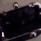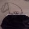 In pelle o ecopelle nera senza stappi o sbucciature (etichetta dei materiali tagliata), catenella metallica per portarla a spalla, internamente ha una taschina con cerniera.