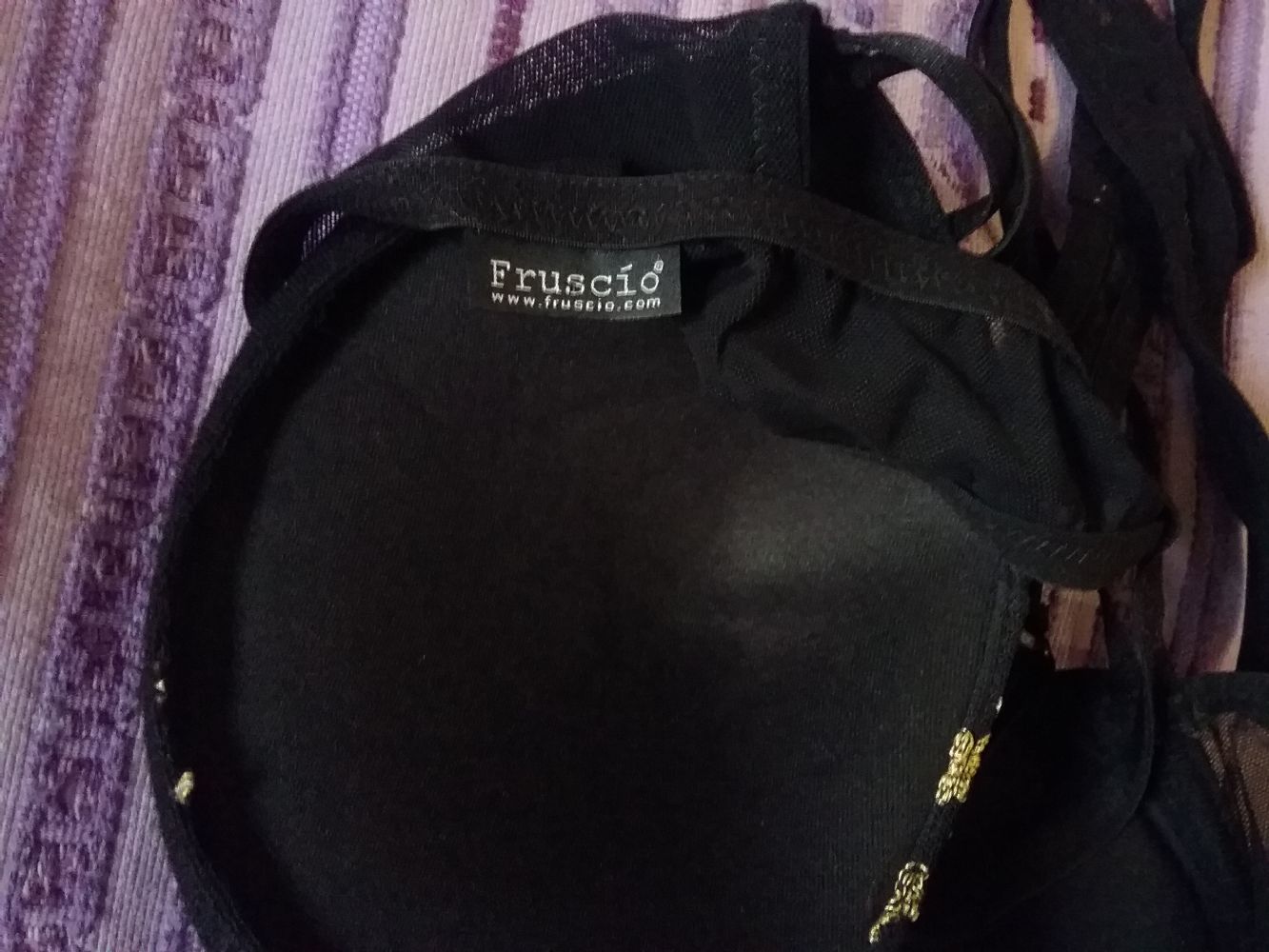 Reggiseno nuovo marca Fruscio. Nero con inserti dorati. Veste max una III con coppe imbottite.