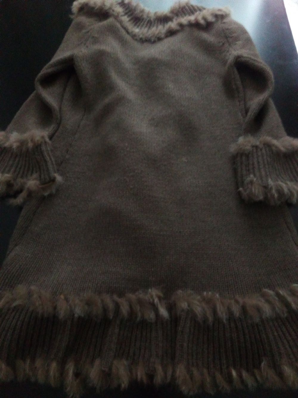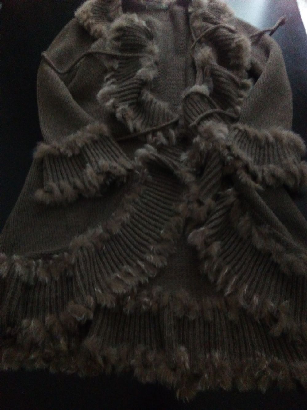 Cardigan come da foto, ottimo stato, morbido, caldo, lungo cm 100. Taglia 48/50. La rifinitura di pelliccia in qualche punto si è staccata, ma basta qualche punto di ago e filo (o con l''uncinetto) e va a posto
