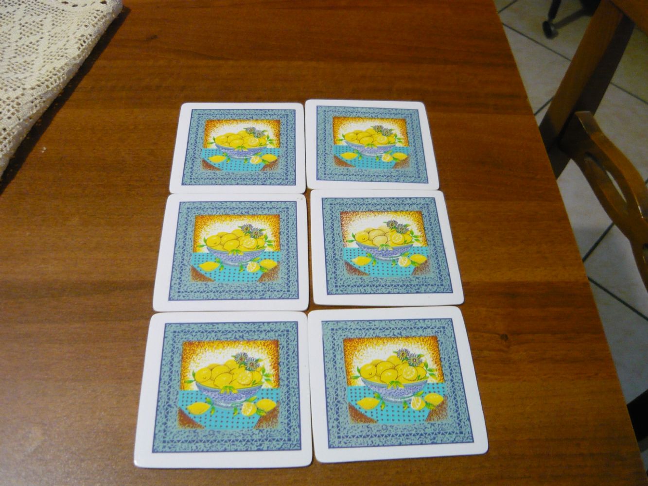 Descrizione:6 sottobicchieri limoni MIS. 10X10 di gomma/plastica