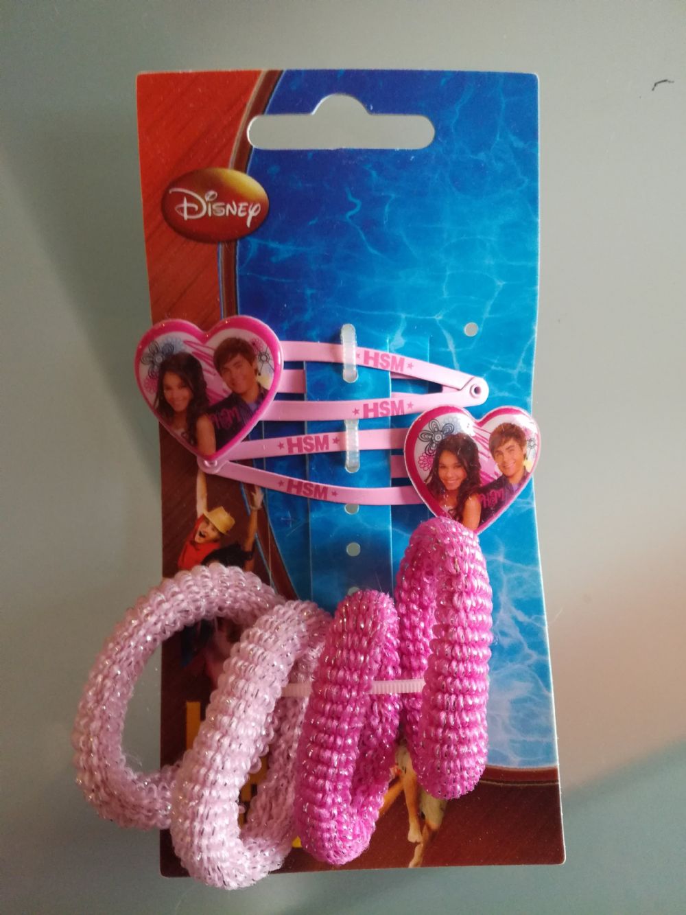Descrizione:HIGH SCHOOL MUSICAL --4 ELASTICI...DUE MOLLETTE A FORMA DI CUORE. TUTTO NUOVO
