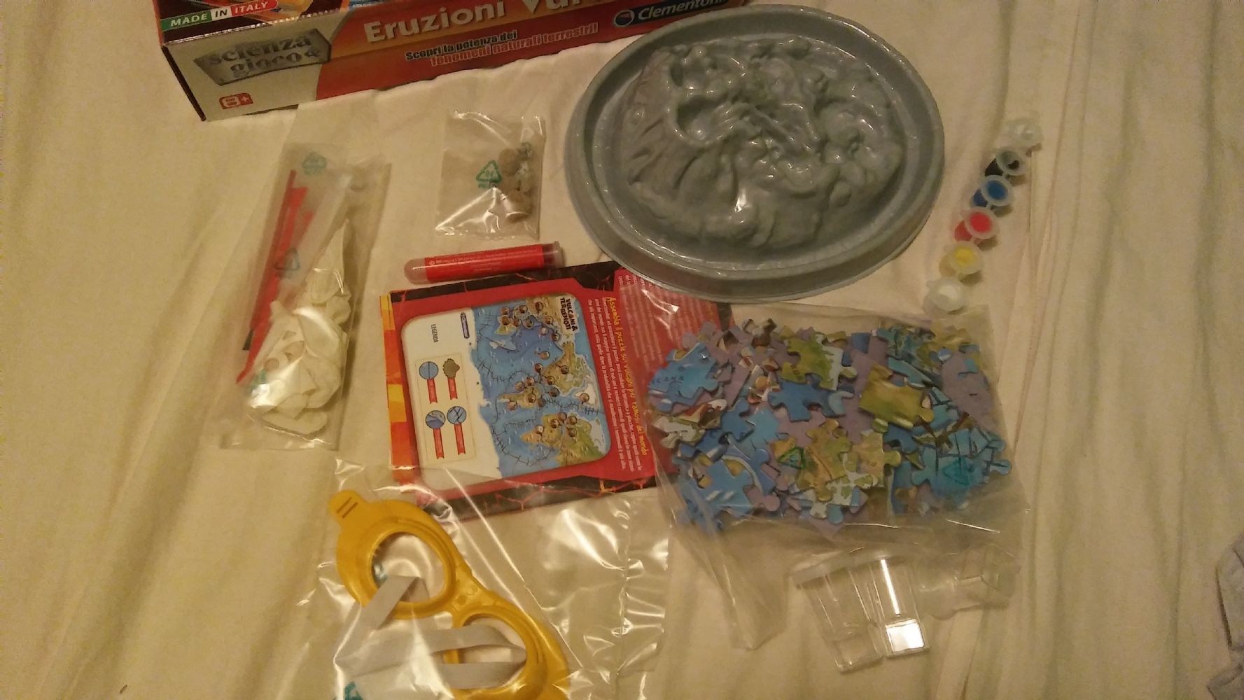 Gioco eruzioni vulcaniche x esperimenti piu puzzle. Solo tolta pellicola trasparente contenuto integro.