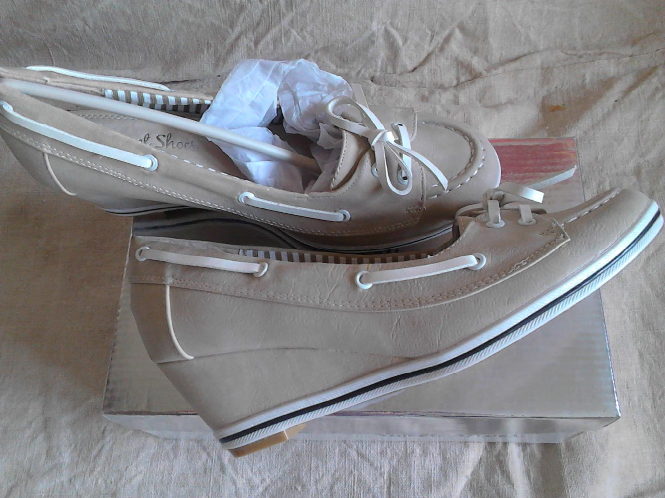 Descrizione: mi indossate,beige con stringa bianca, zeppa 5 cm