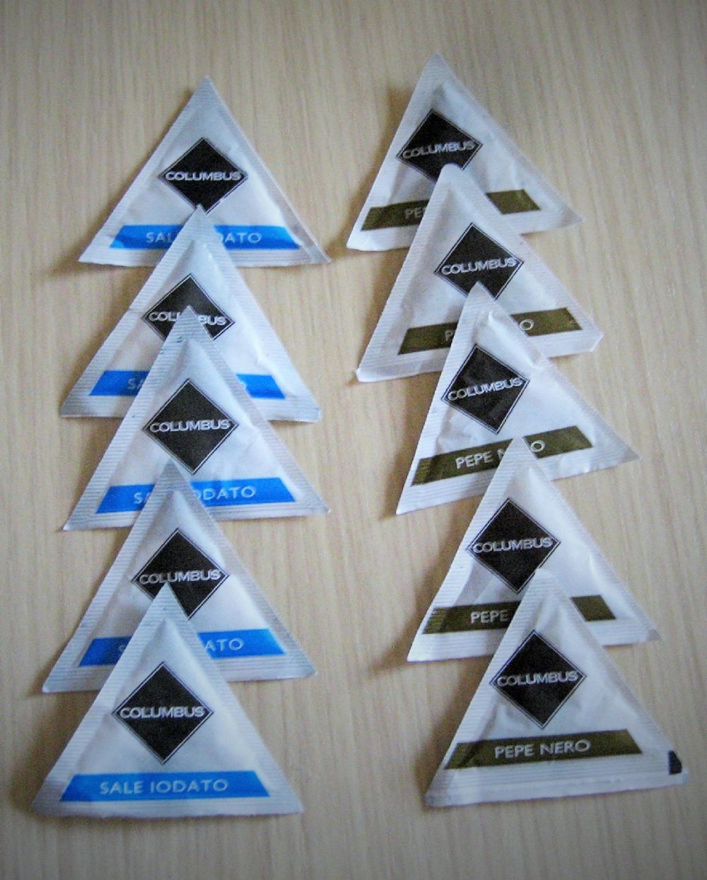 Descrizione:5 bustine di sale iodato +5 bustine di pepe
