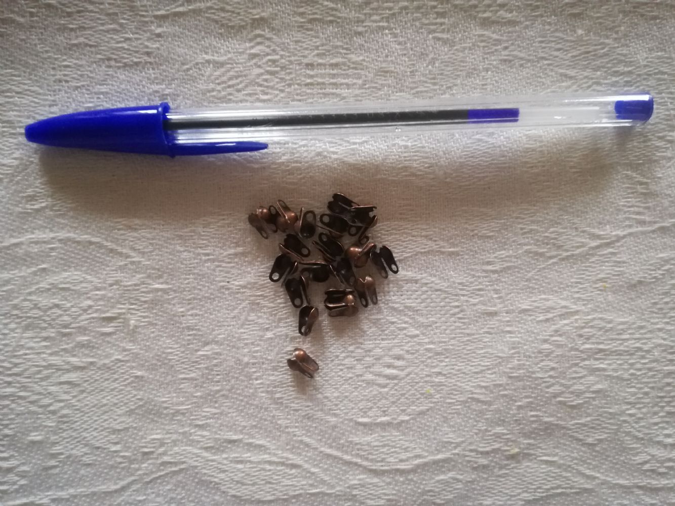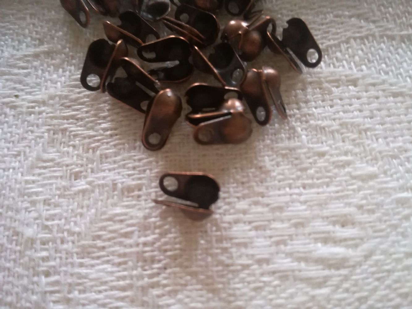 Descrizione:N. 20 fermafili/schiaccini, componenti in metallo brunito per hobby creazione gioielli.