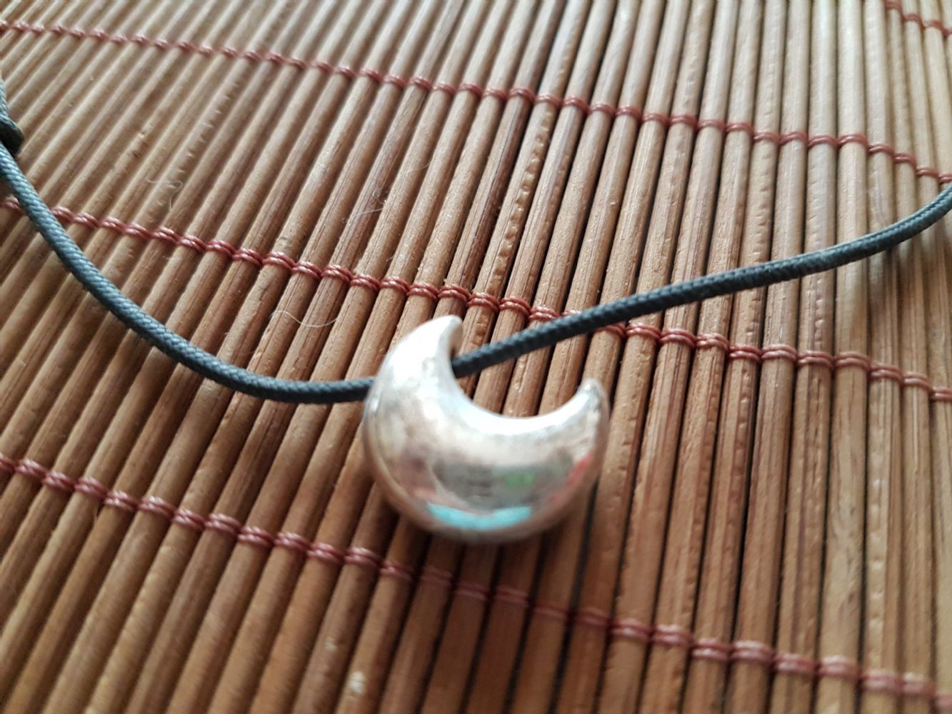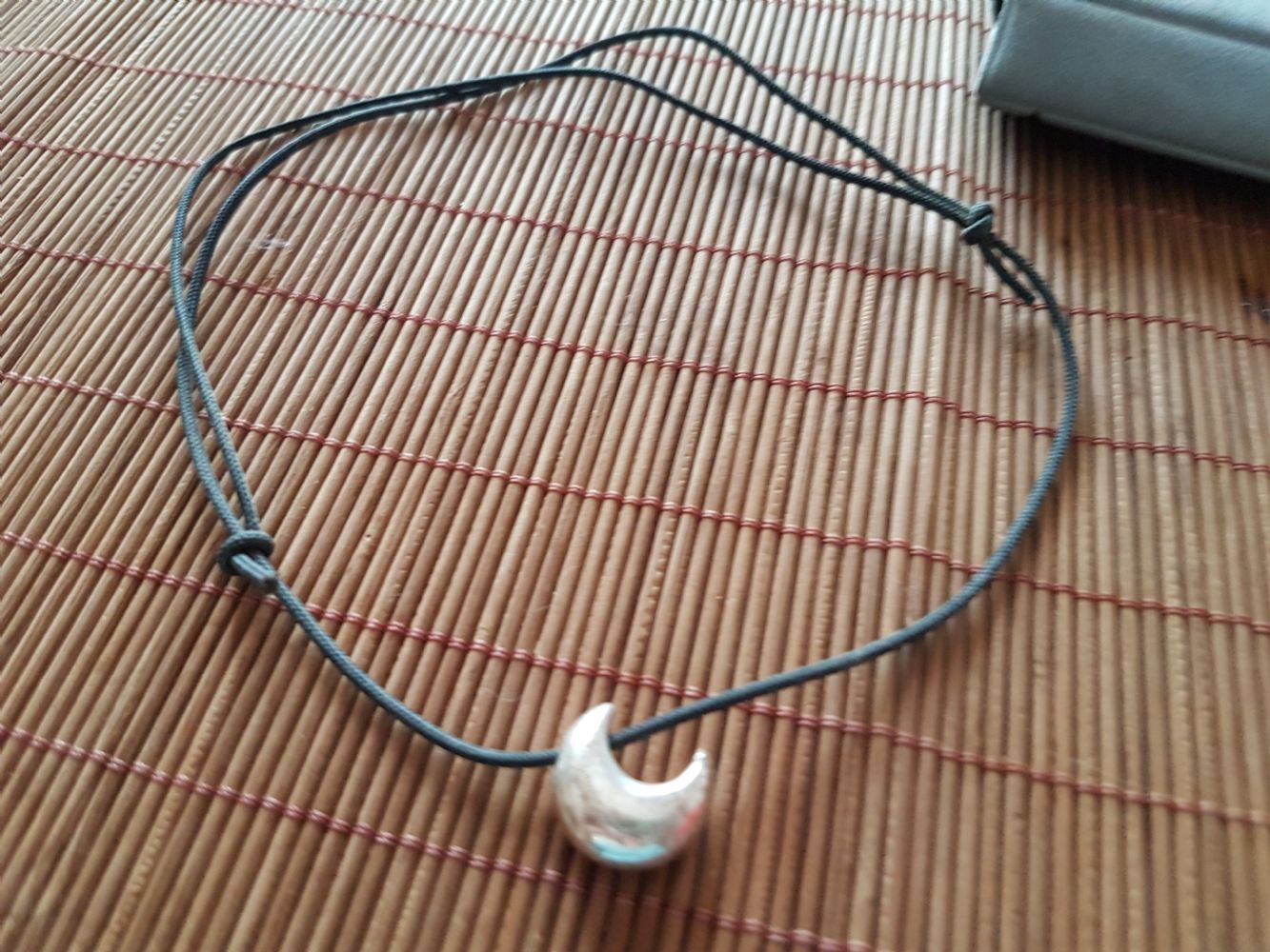 Descrizione:Girocollo in corda con ciondolo luna in metallo.