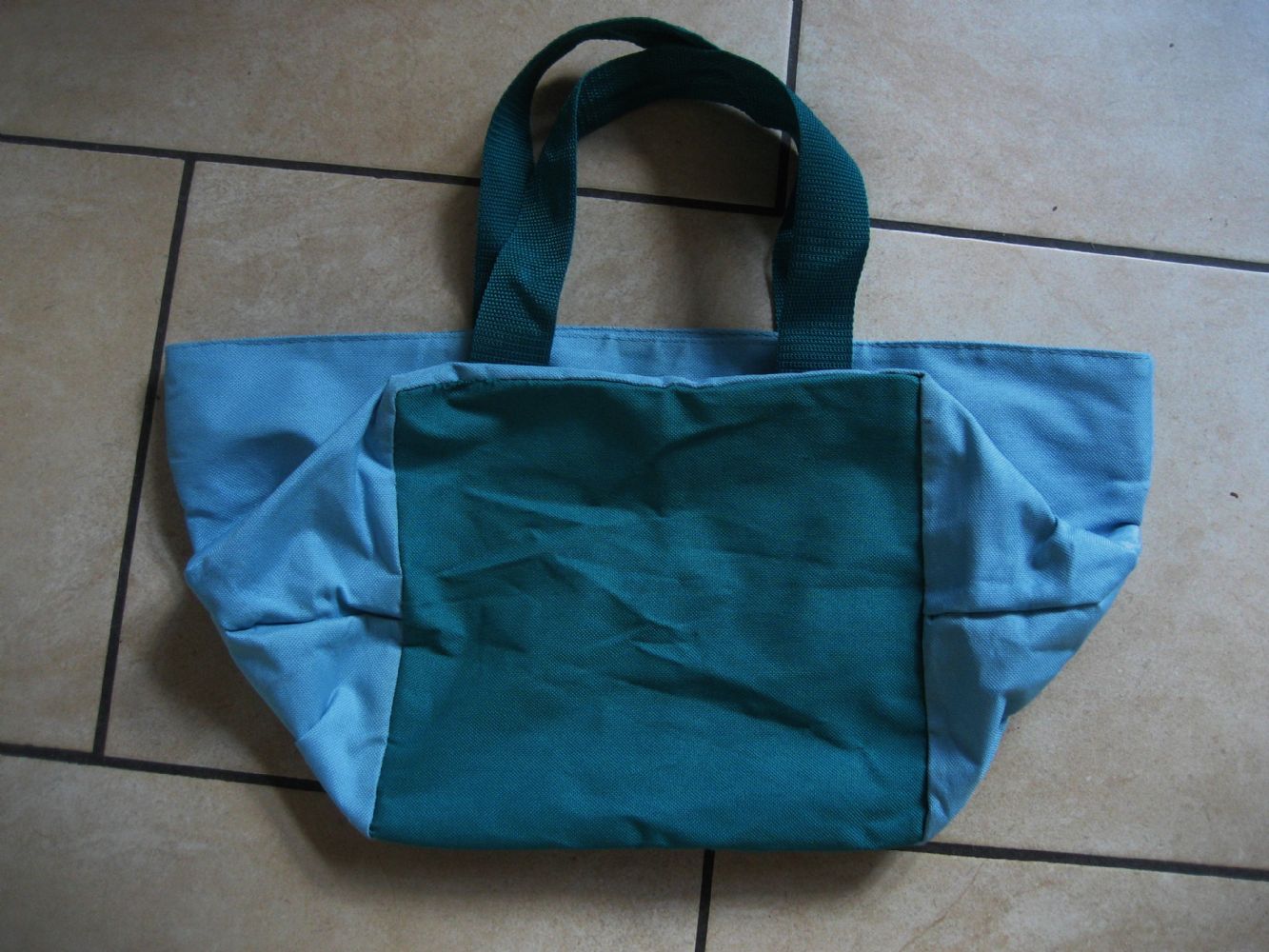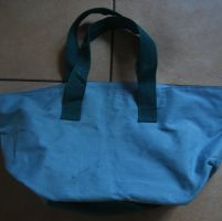 borsa in materiale sintetico turchese,manici e fondo verde