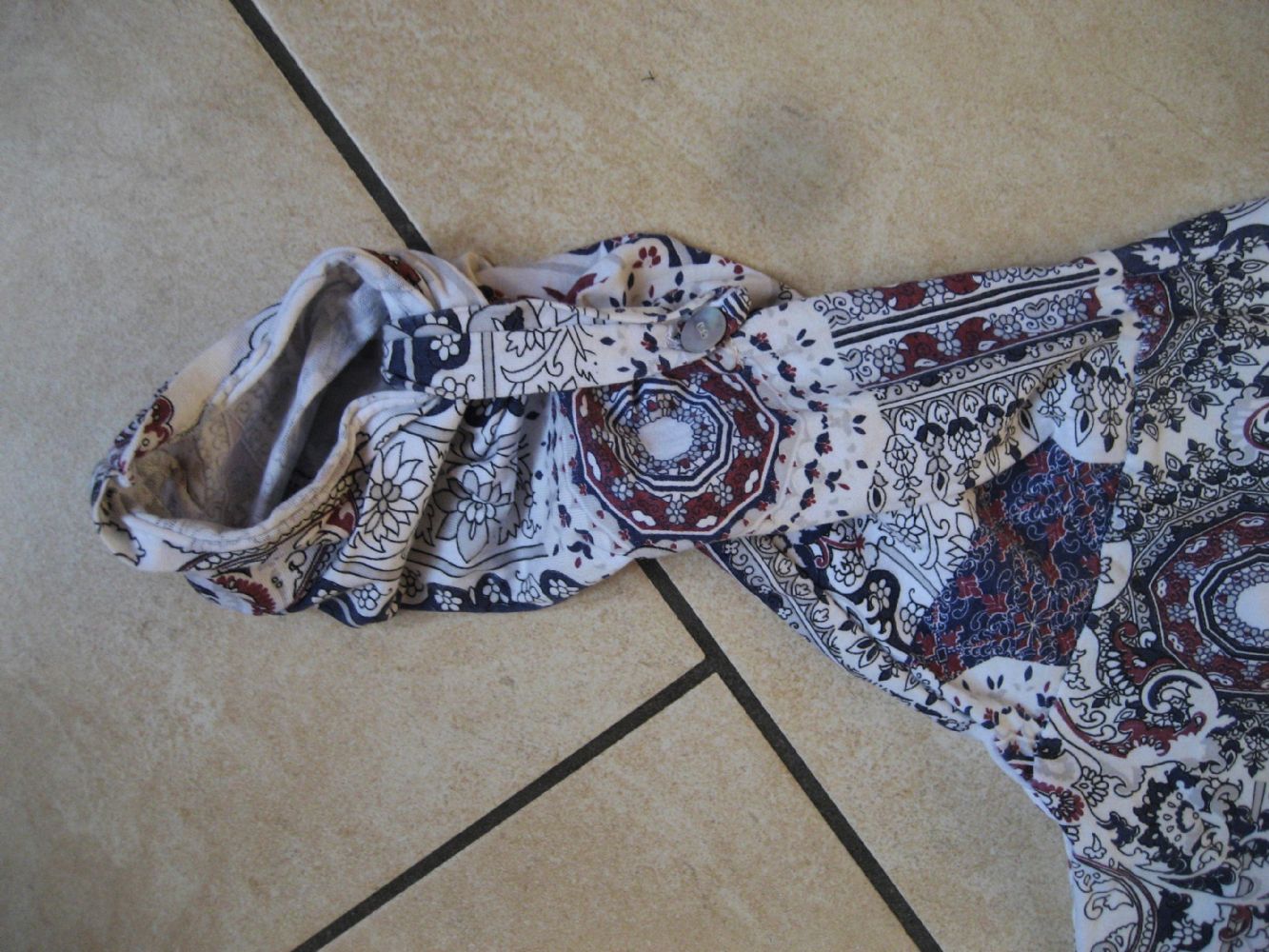 ha un bottone in madreperla nelle maniche che consente di tenerle lunghe o accorciarle