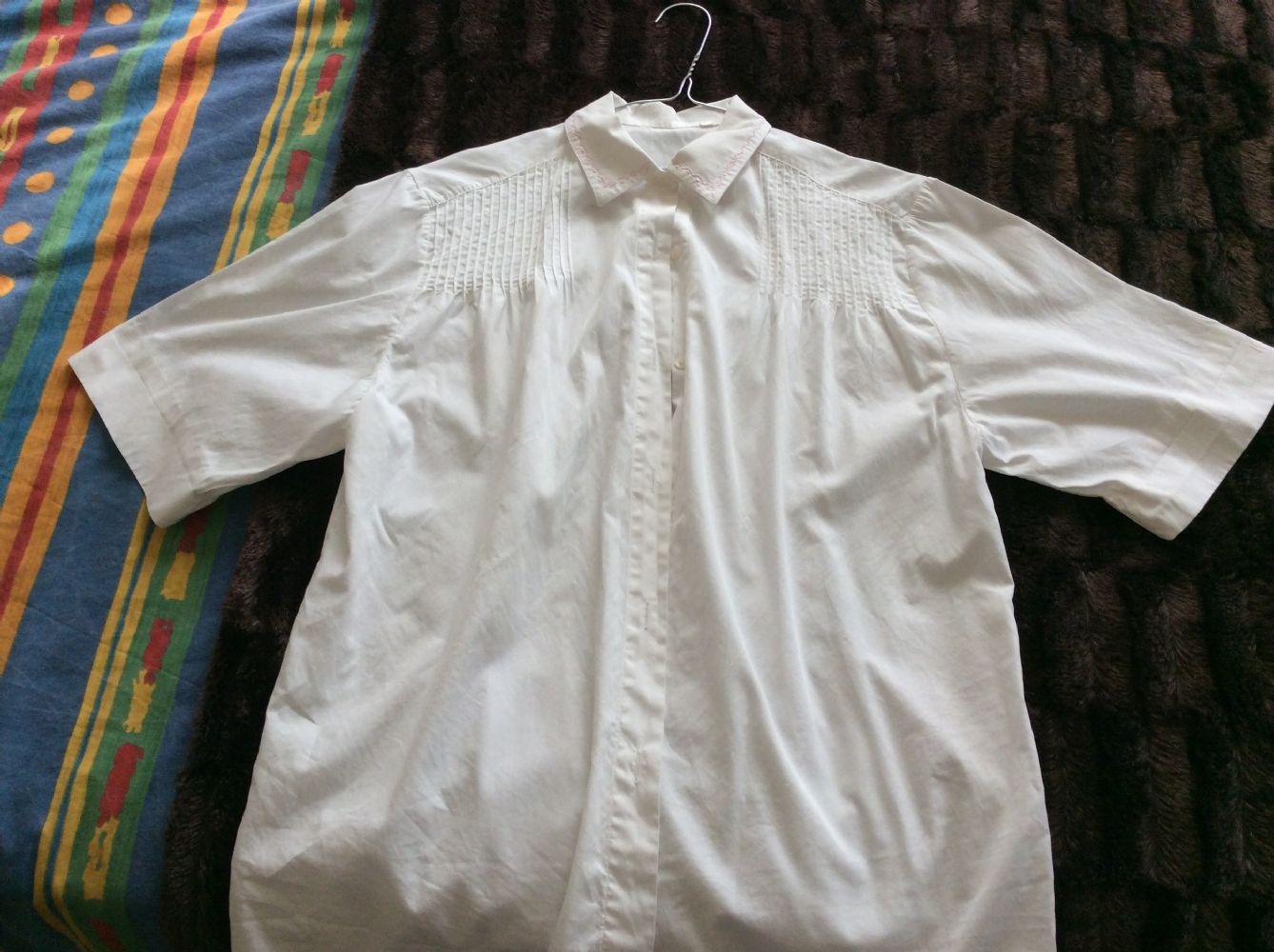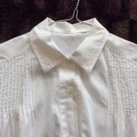 Descrizione:Camicetta bianca con colletto ricamato in rosa, vintage ma molto attuale, ottimo stato. Taglia m.