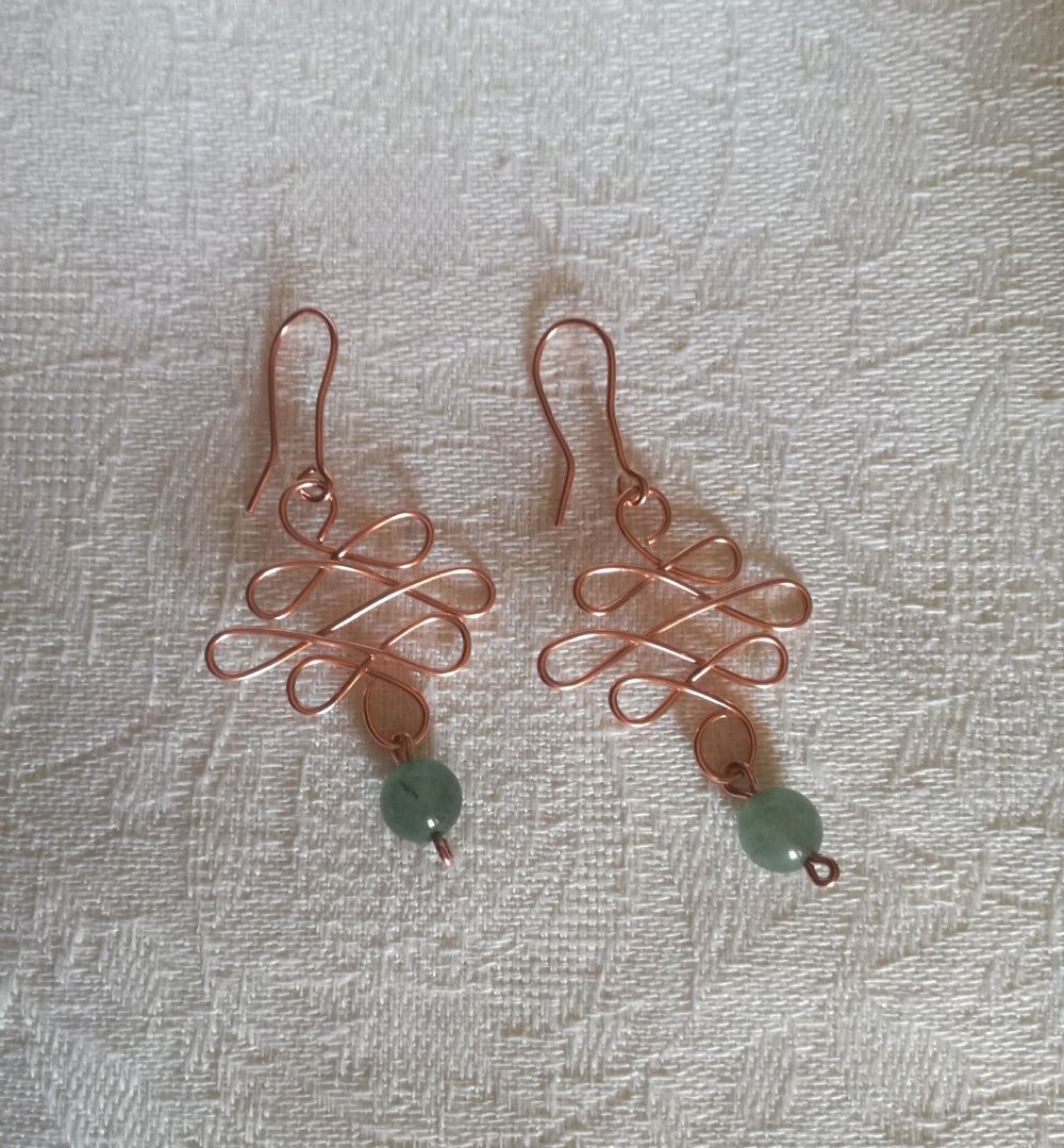 Descrizione:Orecchini con pietre dure, realizzati interamente in rame, anche le monachelle, per ridurre al minimo il rischio di allergie.