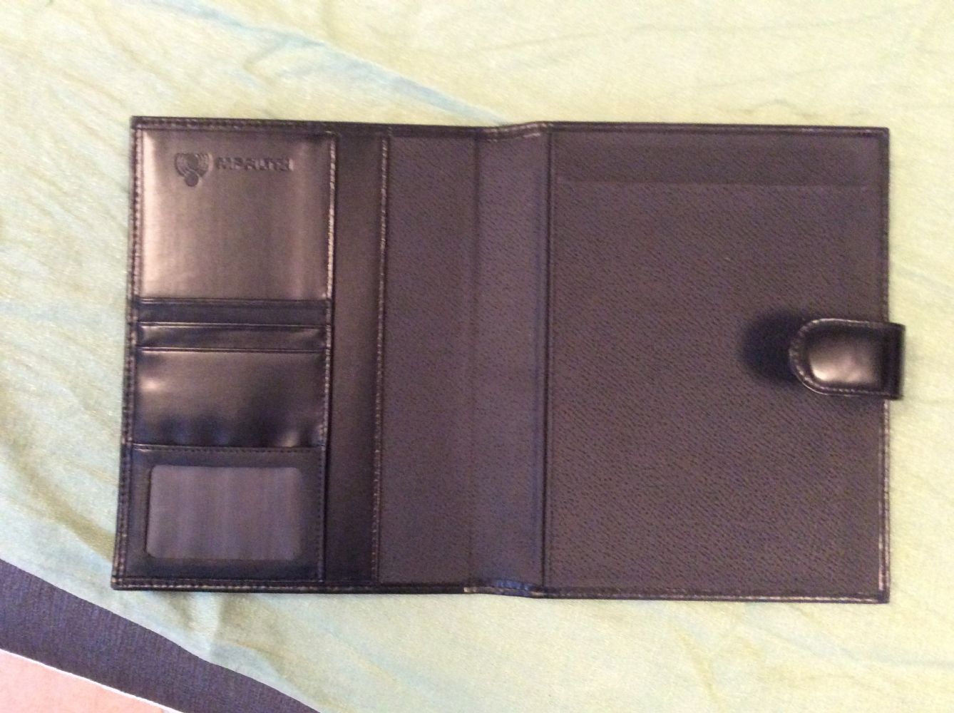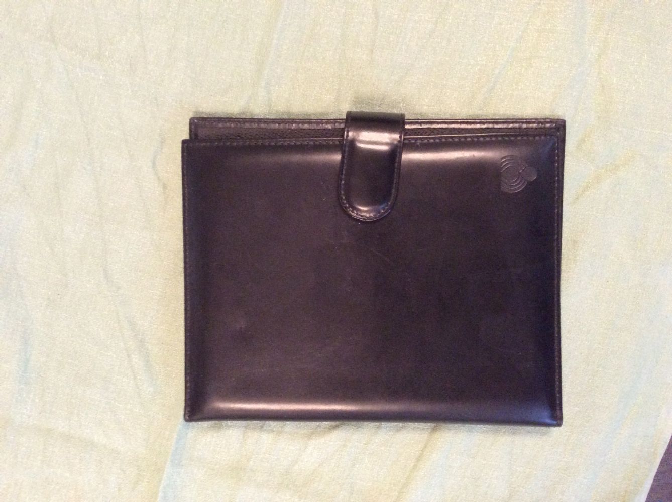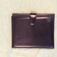 Descrizione:Nuovo, in vera pelle nera, Made in Italy, con tasche interne, chiusura con bottone, cm 24 X 16 circa.