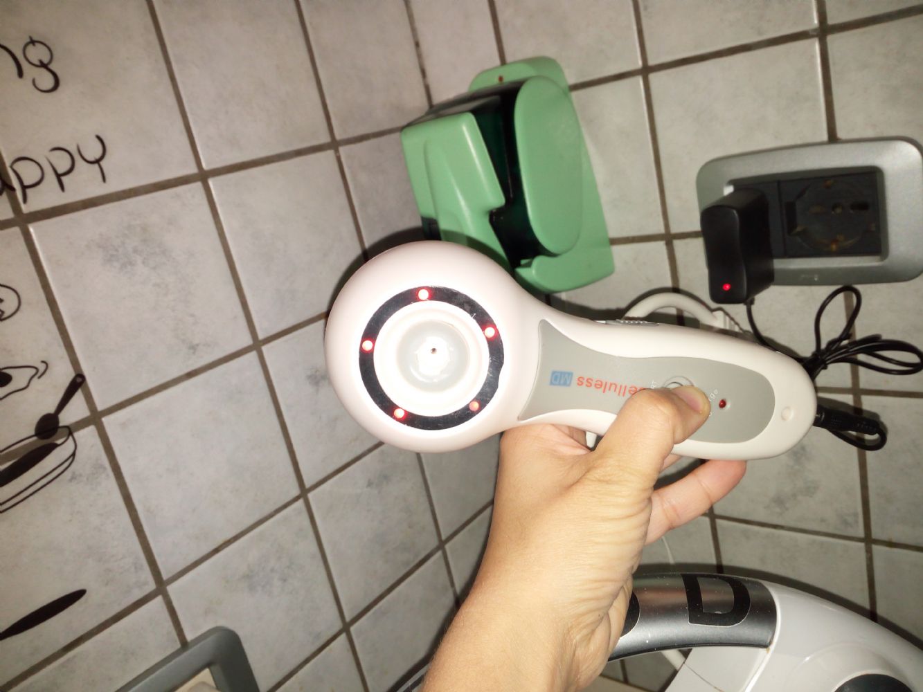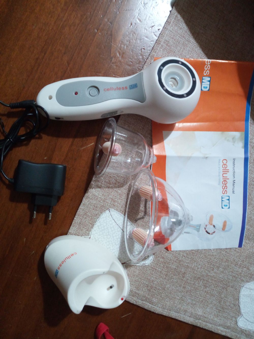 Descrizione:Attrezzo elettronico per cellulite ,funzionante ,comprato ad Agosto di questo anno,ma non ho la pazienza di usarlo.Ha il carica batterie ed una volta carico funziona senza corrente,in pratica metti in olio sulla pelle e questo aspira ,ottimo se si fa' almeno 3 volte a settimana .spedisco per Varese.
