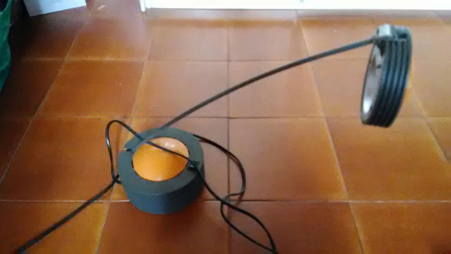 Lampada da tavolo molto bella. X lampadine alogene. L avevo pagata parecchio ma è molto utile, tasto doppia funzione.. Stelo che si inclina