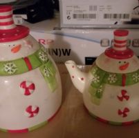 Descrizione:Porta biscotti e teiera natalizia usata solo l anno scorso. Posso portarla domenica 9 a Varese da Lucia poi non so.