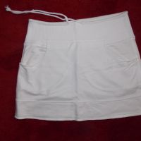 gonna di felpa leggera (6 crediti), pantaloni corti verde militare 90% cotone (3 crediti), pinocchietti leggeri neri (3 crediti), camicia azzurra a pois (3 crediti), maglietta sbracciata (6), pinocchietti verdi (7 cerditi)