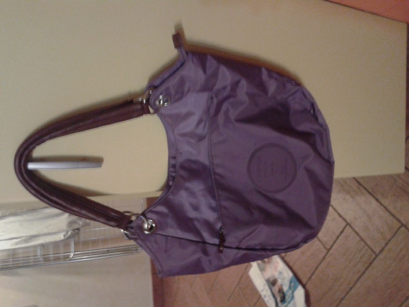 Descrizione:borsa Carpisa mai usata, senza cartellino. colore viola con manico marrone. Larghezza: 44 cm, lunghezza: 32 cm. Una tasca esterna e una interna con cerniere, più due tasche piccole interne senza cerniera (una è un porta cellulare).