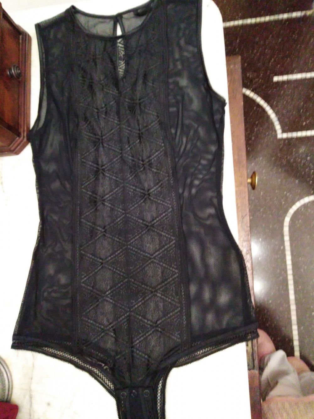 Body nero Tg. L, marca Intimissimi Lingerie, bordino giro maniche e collo in raso, chiusura slip con bottoncini a pressione, sgambato davanti e dietro, molto elastico, misure totale lunghezza spalla slip 73cm larghezza ascella 38cm ripeto molto elasticizzato, tenuto molto bene, molto beo come sotto giacca!