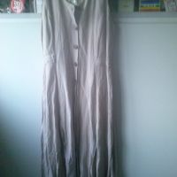 Descrizione:cotone e lino, color caffellatte lungo, con vari spacchi che movimentano la linea durante la camminata