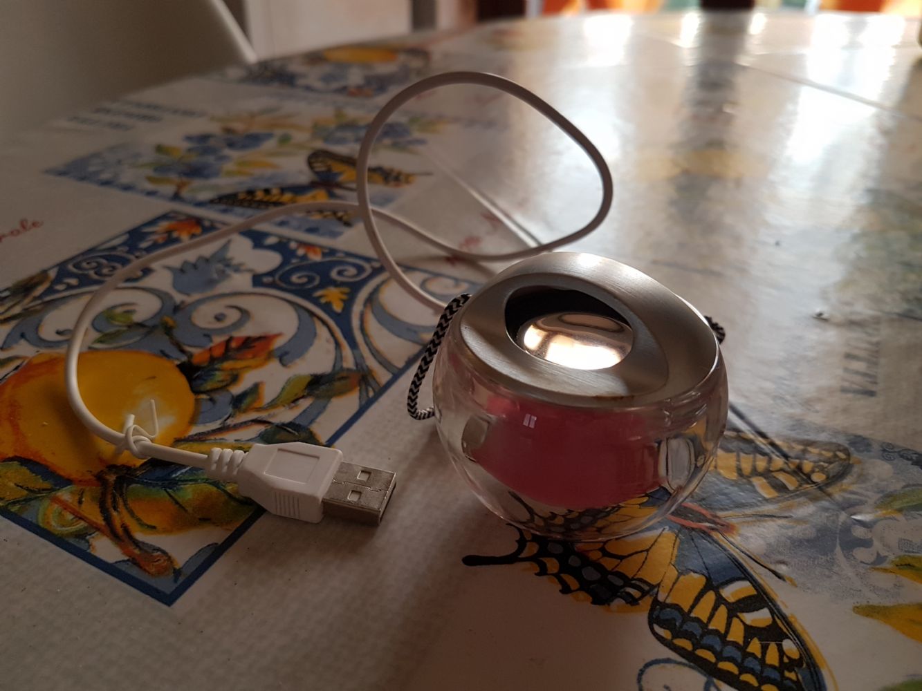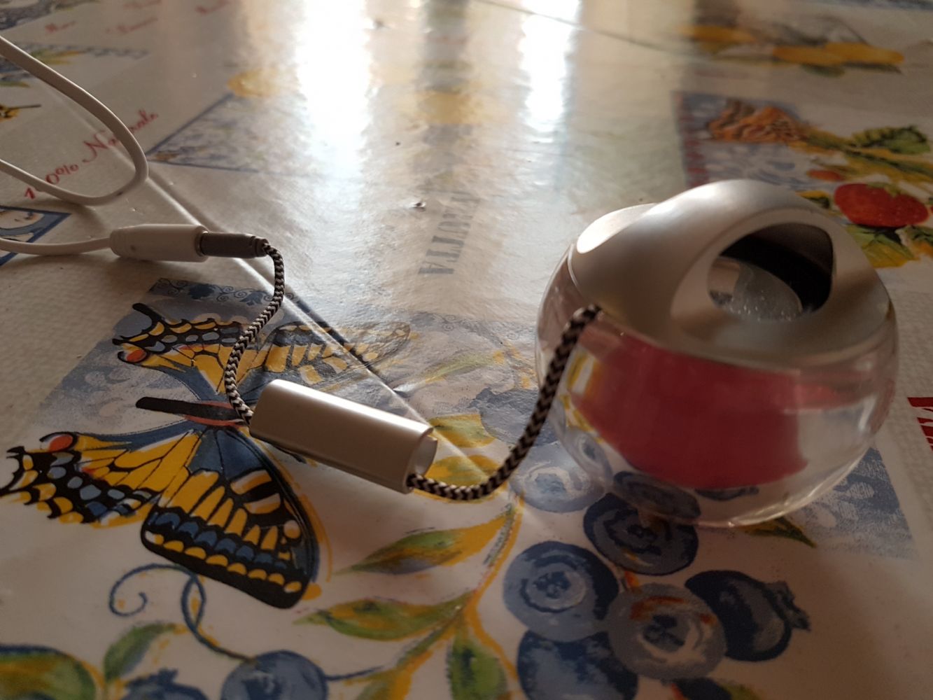 Descrizione:Piccolo amplificatore da collegare al cellulare tramite attacco auricolari, completo di cavo di ricarica, funzionante. Si illumina durante l'uso.