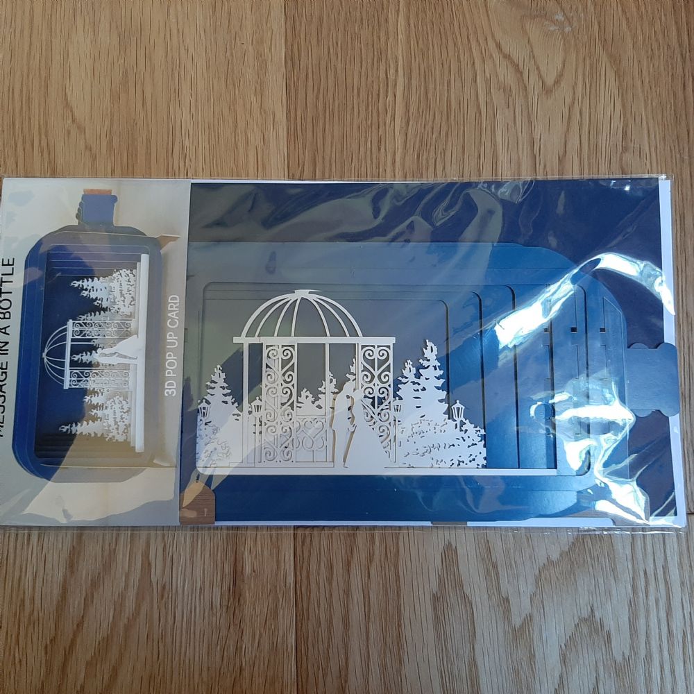Raffigura una bottiglia in 3d, con all'interno gli sposi e un paesaggio, su più livelli.