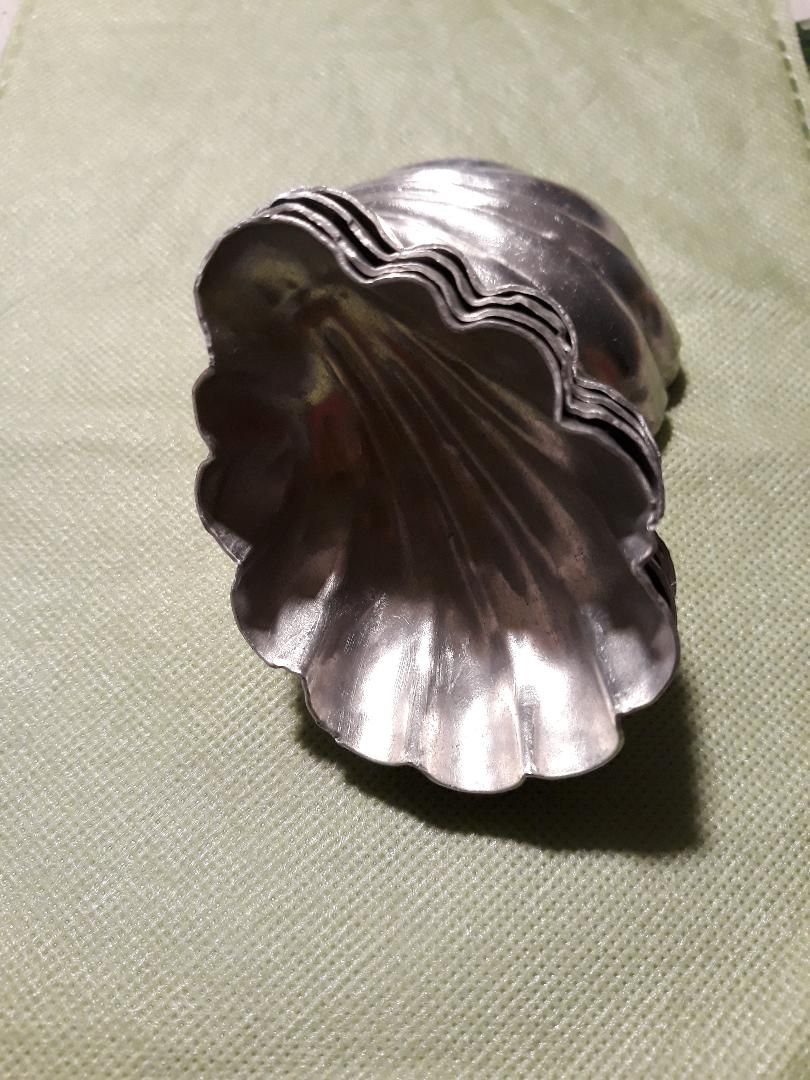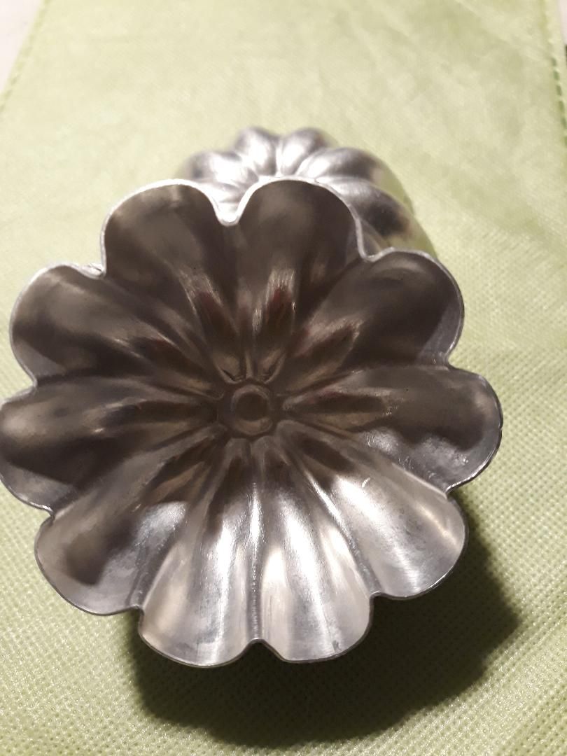 formine di una volta ,per dolcetti o saponette, cm 6.30............ ne ho 5 fiore, i crediti sono per 1 pz. conchiglia ne ho 6 e l''altra 1 sola e misura cm 9