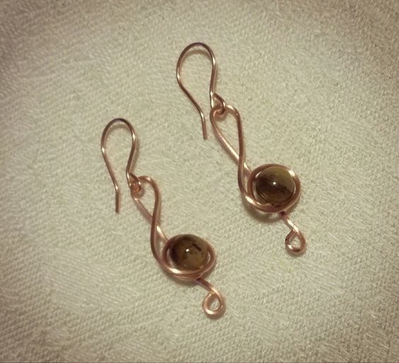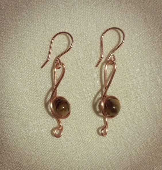 Descrizione:Orecchini realizzati interamente in rame, anche le monachelle, per ridurre il rischio di allergie. Le pietre dure utilizzate sono occhio di tigre.