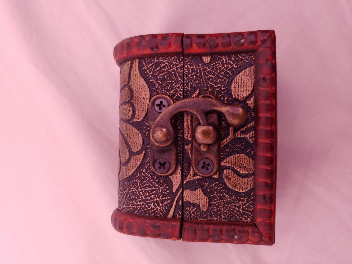 piccola scatola porta gioielli mi sembra legno misura cm 7 x 4.5 la base e 6 cm di altezza totale