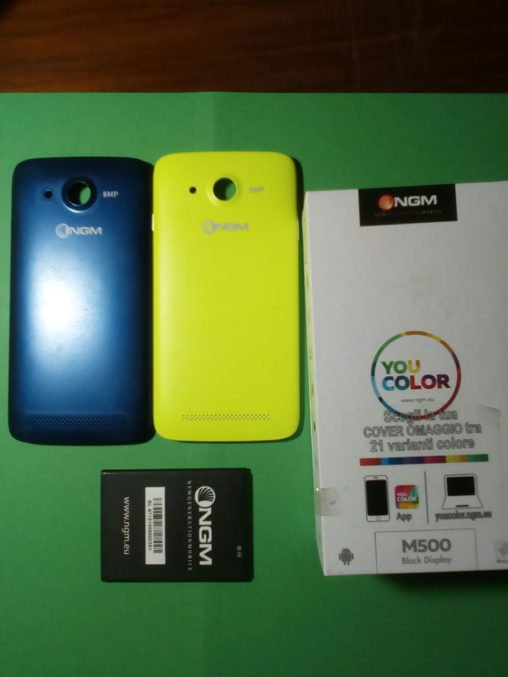 Accessori per smartphone NGM YouColor. Il telefono è stato buttato, ho la scatola con manuale d'istruzioni, due cover e la batteria.