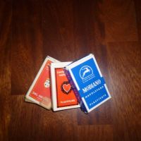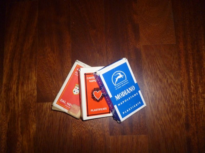 3 mazzi di carte napoletane di cui 2 nuovi e uno usato, per questo ho scritto "usato poco". Le carte Modiano sono sponsorizzate sul retro da un'azienda vinicola.