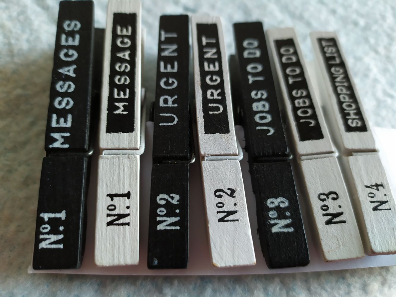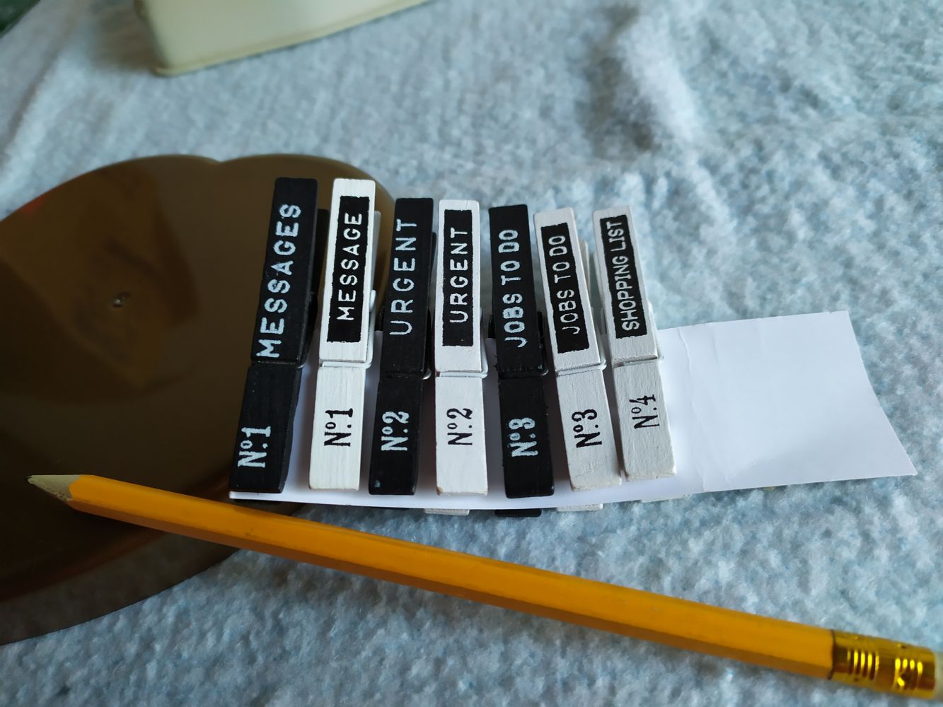 Descrizione:Sono 7. Manca la nera con scritto "shopping list". Per questo ho scritto usate poco. In realtà queste 7 sono nuove. È stata usata solo quella mancante. Matita solo per misura. Sono in legno.