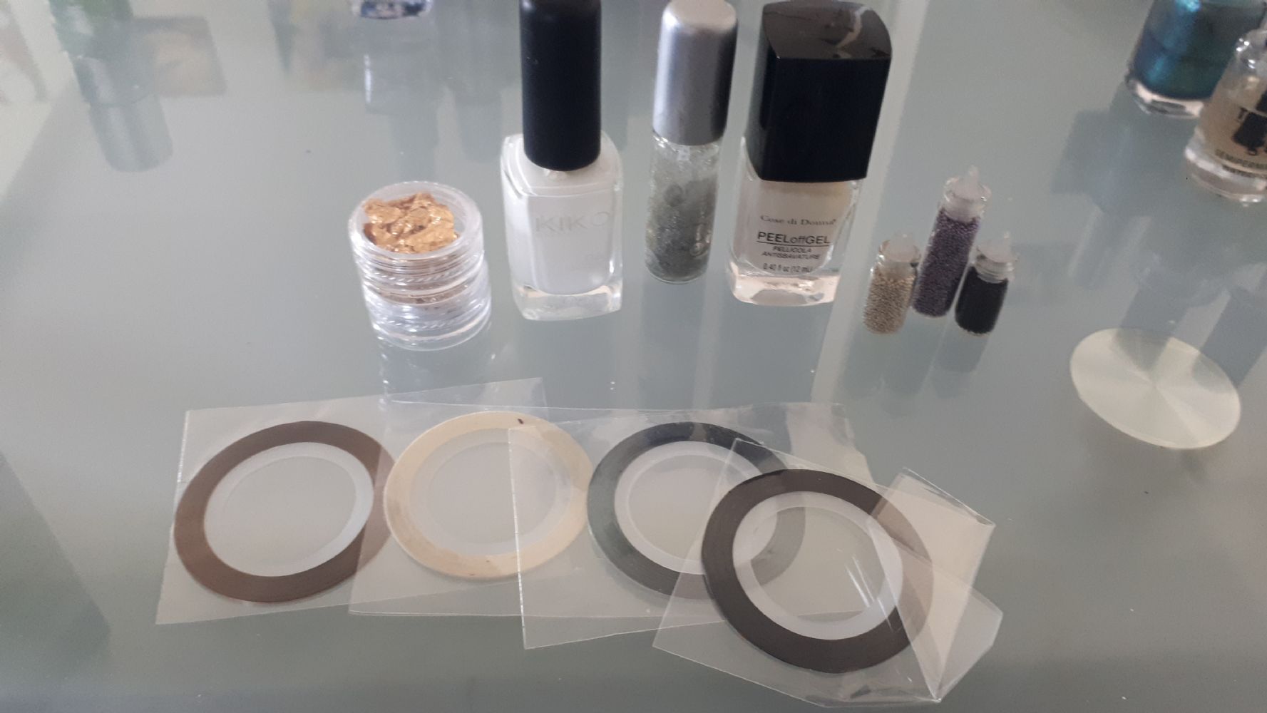 - 4 rondelle tipo scotch bianca, blu e argento (mi pare) da mettere sulle unghie per fare delle strisce