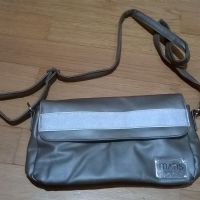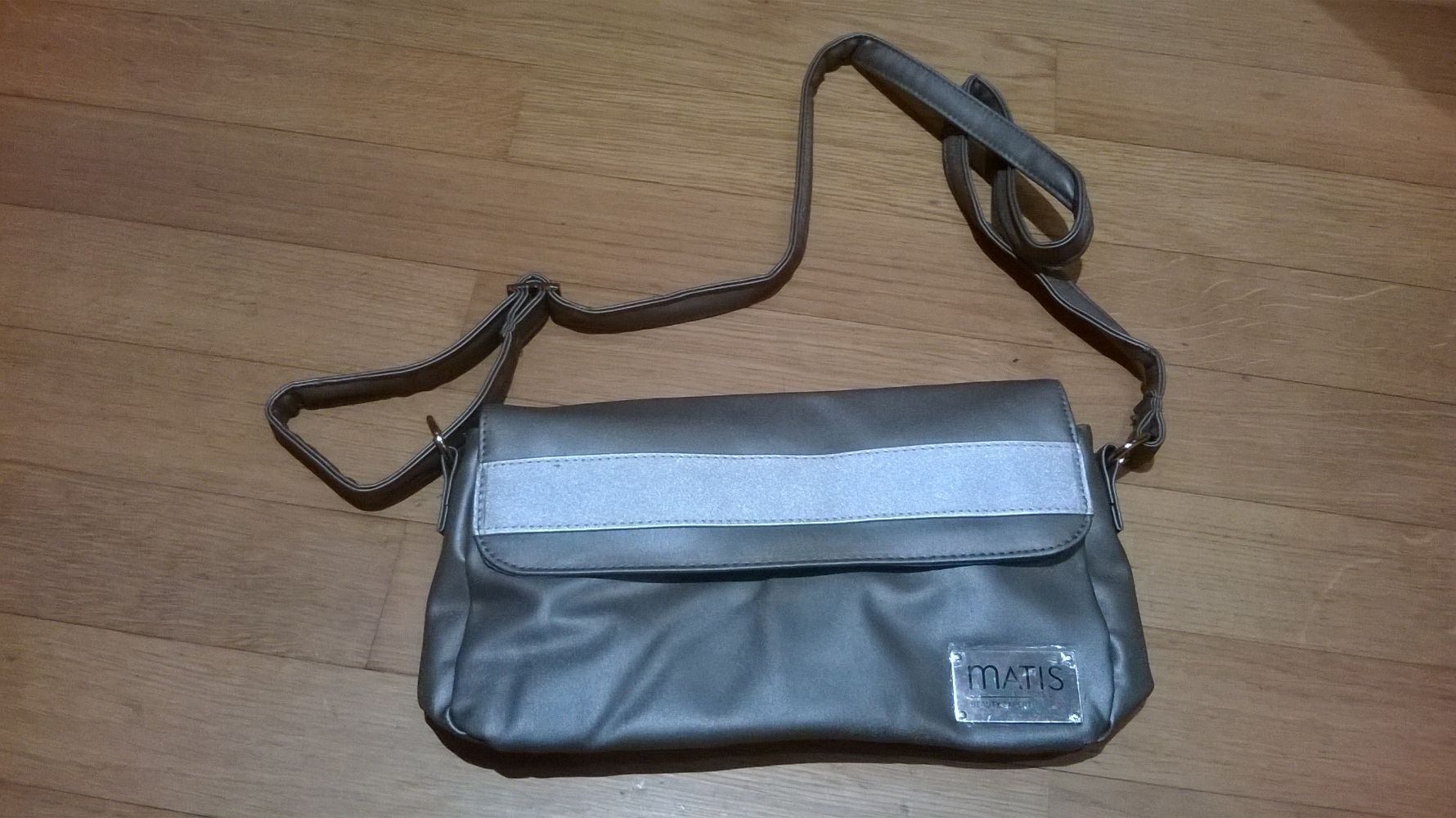 Borsetta nuova grigio argento chiusa con bottone automatico, cinta che può essere inserita all'interno e diventa una pochette. Misura circa 30x15 cm