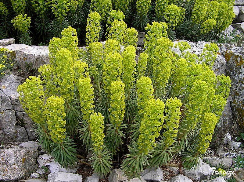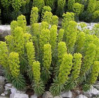 E' un piccolo arbusto sempreverde e molto affidabile, di facilissima coltivazione, per posizioni calde e assolate, anche aride. Si autodissemina con facilità; foglia glauca inconfondibile e grandi e vistose infiorescenze giallo acido in aprile-maggio; dopo la fioritura è opportuno tagliare alla base il ramo che ha portato il fiore per stimolare la nuova crescita; attenzione che il lattice di E. characias è urticante