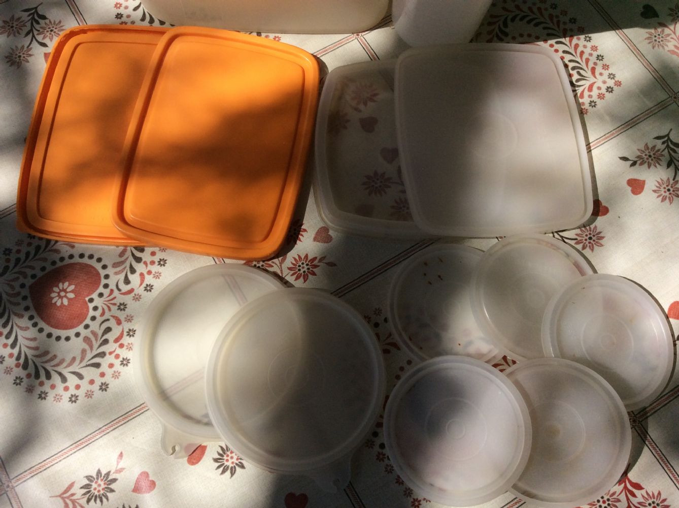 Contenitori verticali tapperware , tanti coperchi di ricambio, usati poco
