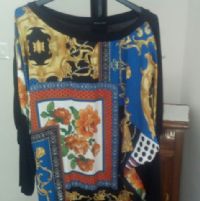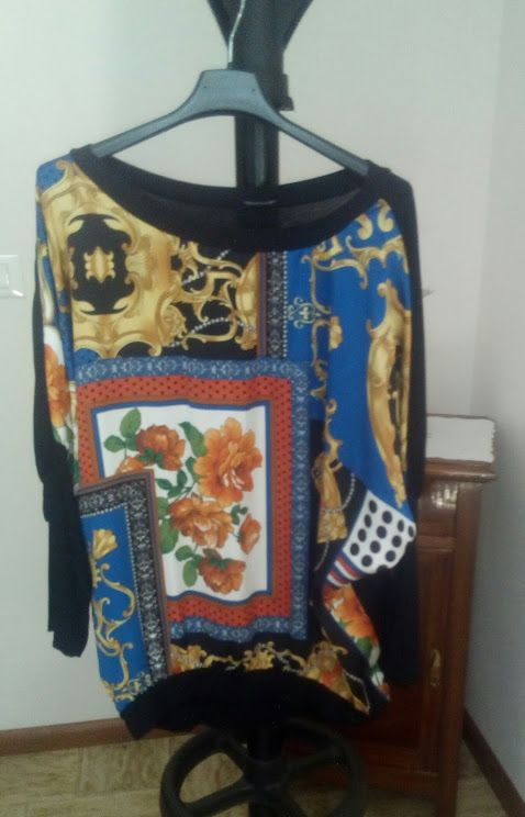 Descrizione:Blusa Me and Me, taglia M, in viscosa e poliestere, larga, si stringe in fondo e avambraccio, lunghezza circa 47 cm, larghezza in fondo cm 44.Regalata da una collega, in ottime condizioni.