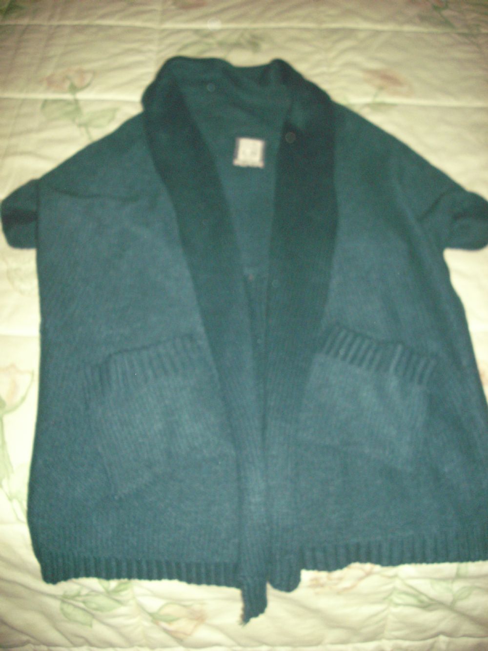 giacca in lana pesante taglia m una volta indossata sembra uno scialle per il particolare taglio sul retro,poco visibile in foto