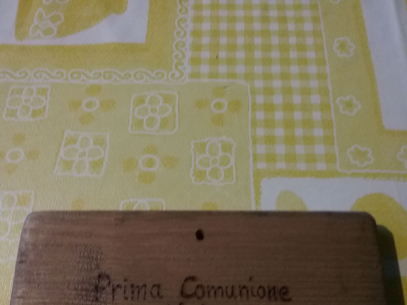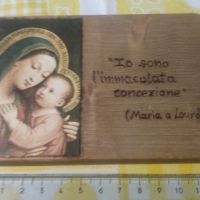 Icona in leno, con iscrizione, realizzata dalle Clarisse di Montone. Era una bomboniera di una prima comunione, quindi con il pirografo dietro c''e'' inciso un nome e una data. Invio foto in privato a chi interessa. Precedenza a Celeste.