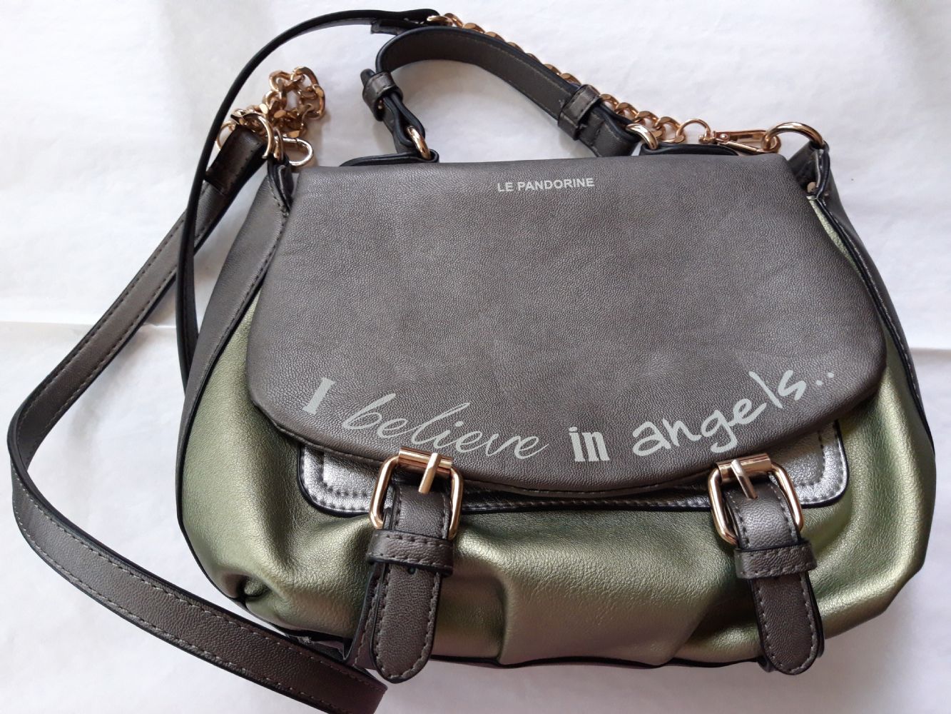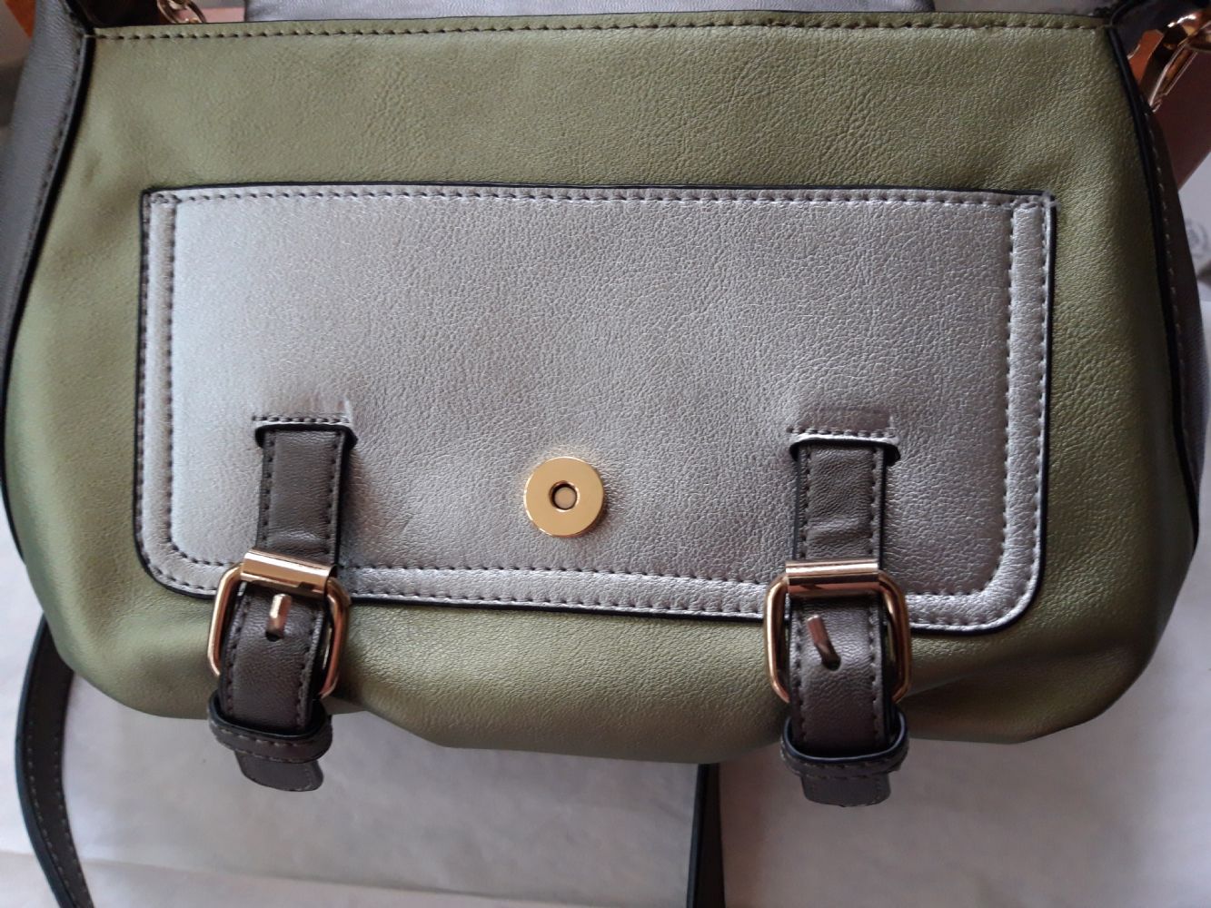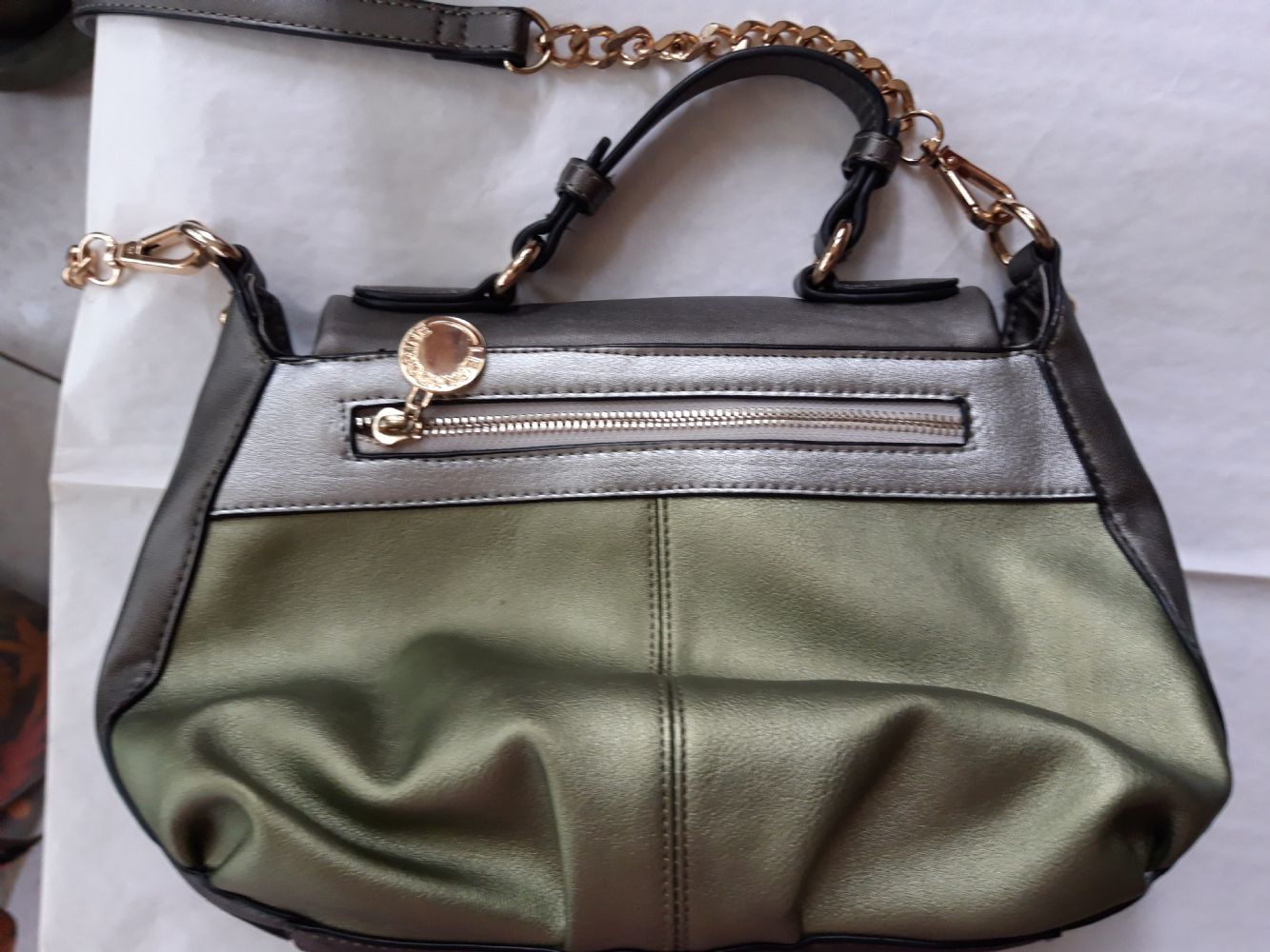 Borsa in ecopelle con colori a contrasto effetto metallizzato.