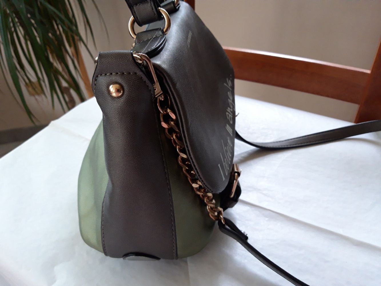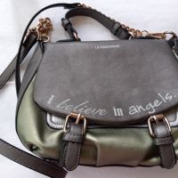 Tracolla asportabile formata in parte da una catena dorata e in parte in ecopelle. Manico a mano e chiusura con bottone nascosto. Tasche interne di cui una con cerniera.