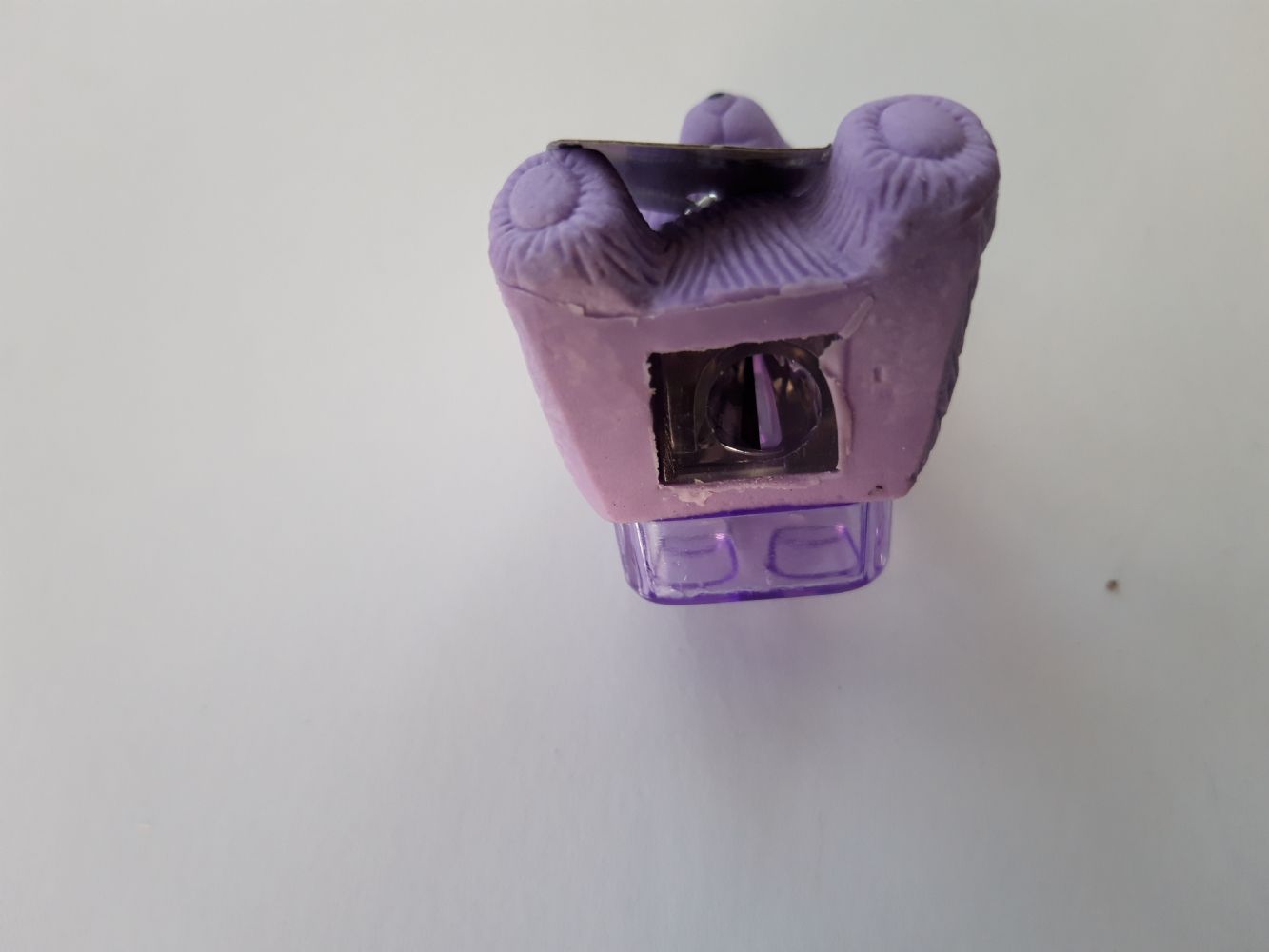 Descrizione:Temperamatite viola a forma di orsetto. Provvisto di serbatoio.