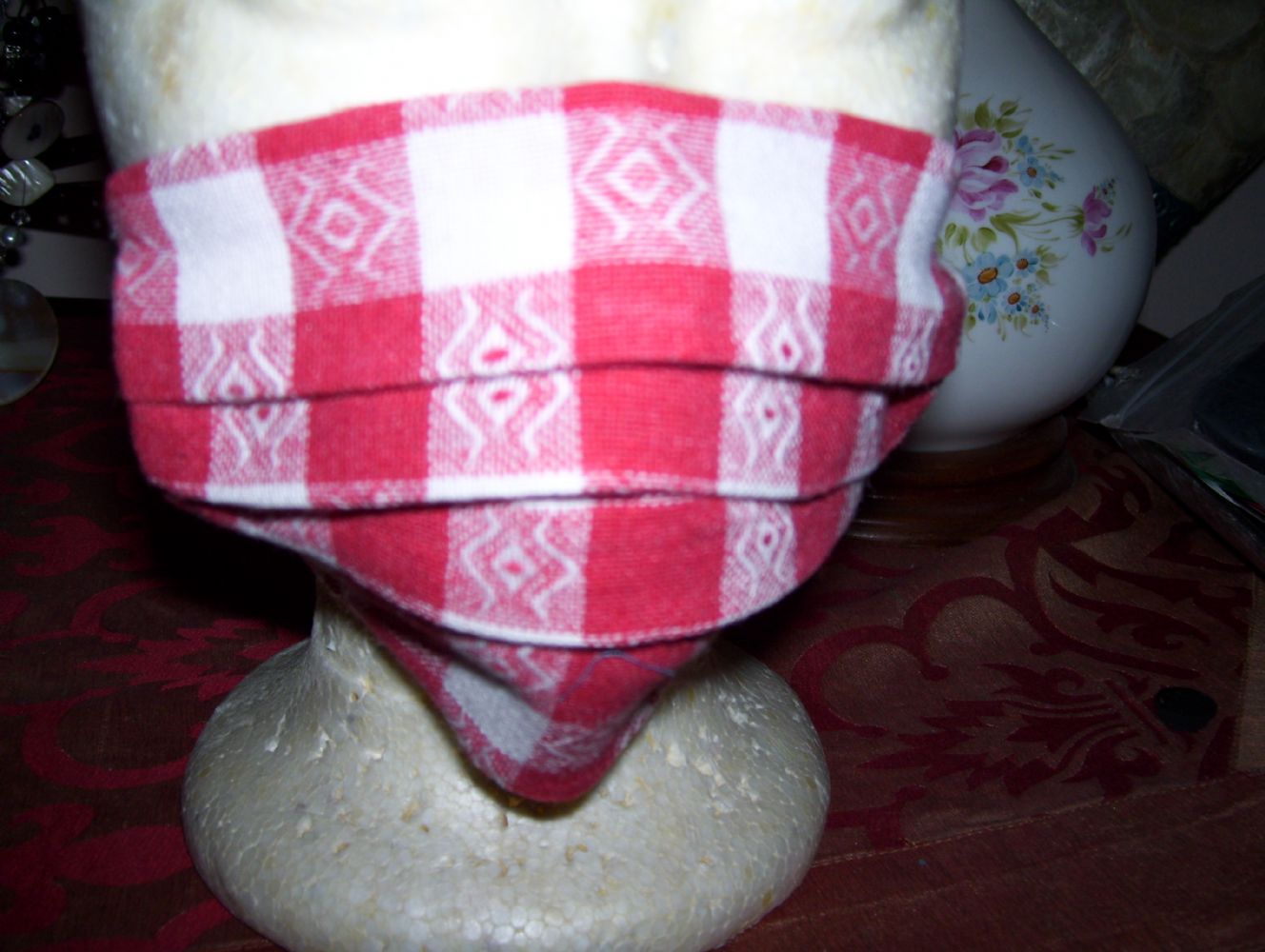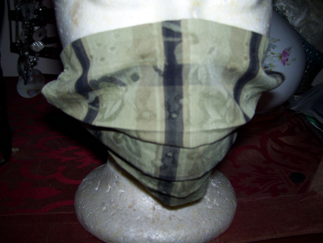 Descrizione:in cotone doppio strato con possibilità di inserire all'interno un filtro ,ho fatto una tasca inferiormente .Lavabili a mano o in lavatrice ,Sono le prime che ho fatto proprio basandomi su quelle chirurgiche .Tessuti in cotone,tipo camicie, nuovi ed elastico nuovo