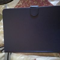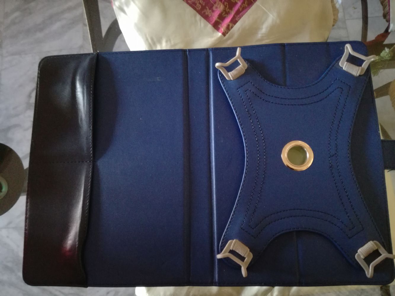 Descrizione:Custodia tablet. Misura cm 15 x cm 22. Colore blu. Il materiale sembra ecopelle.