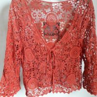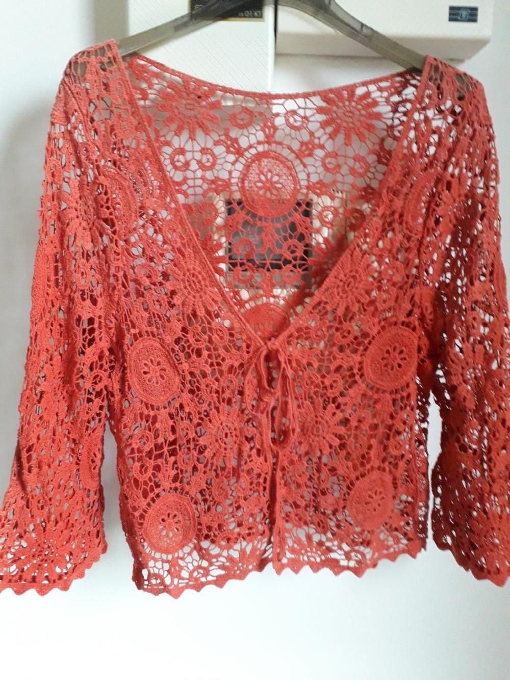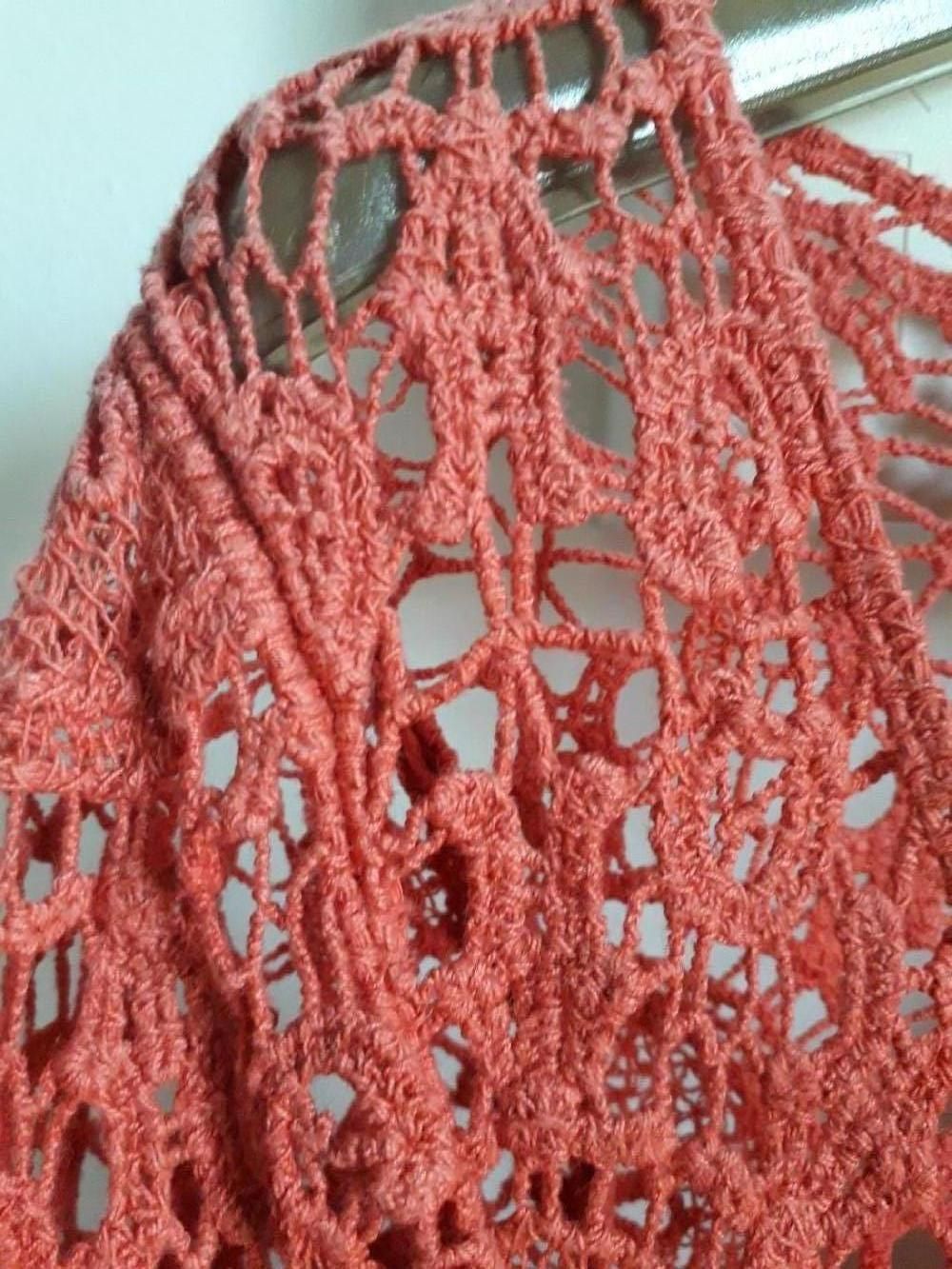 Capospalla uncinetto colore aragosta. Molto bello e di effetto, per me grande.