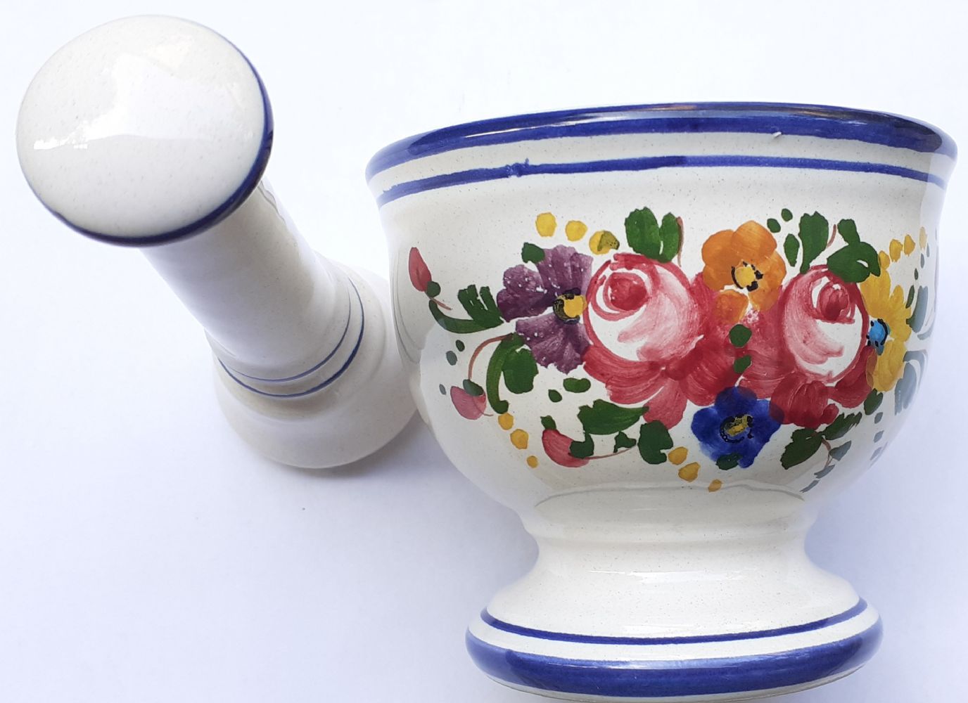 Descrizione:Pestello / mortaio in ceramica, dipinto a mano
