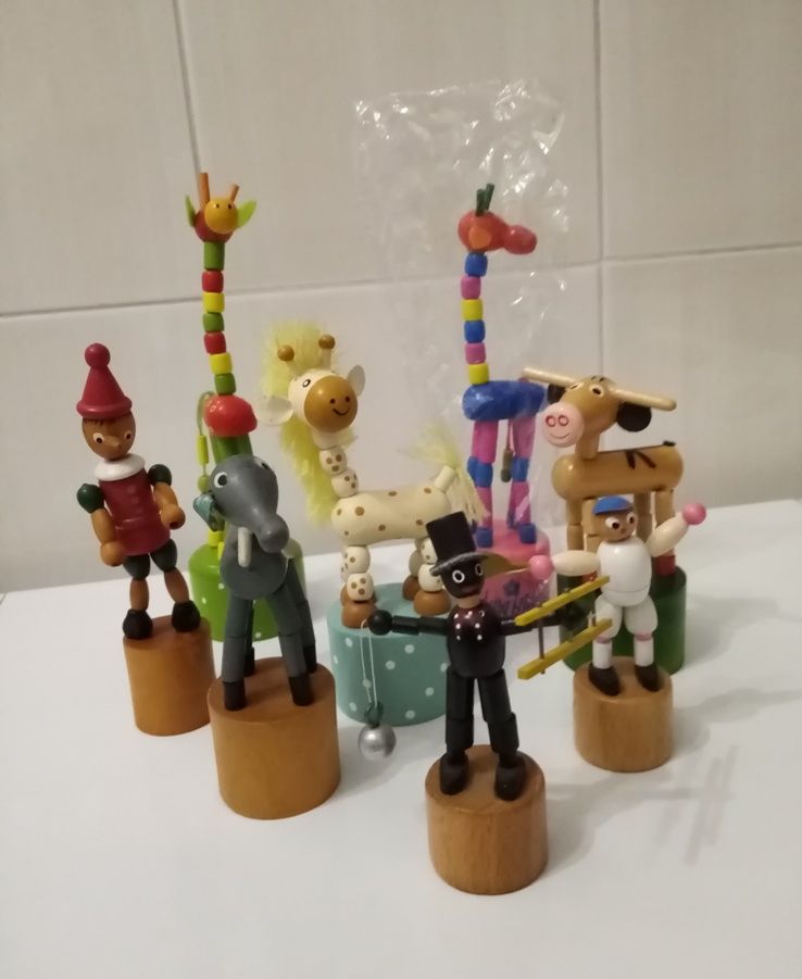 8 pupazzetti di legno snodabili, alcuni comprati altri presi in scambio dai 2 ai 4 crediti l'uno, alcuni nuovi alcuni usati poco uno usato molto.