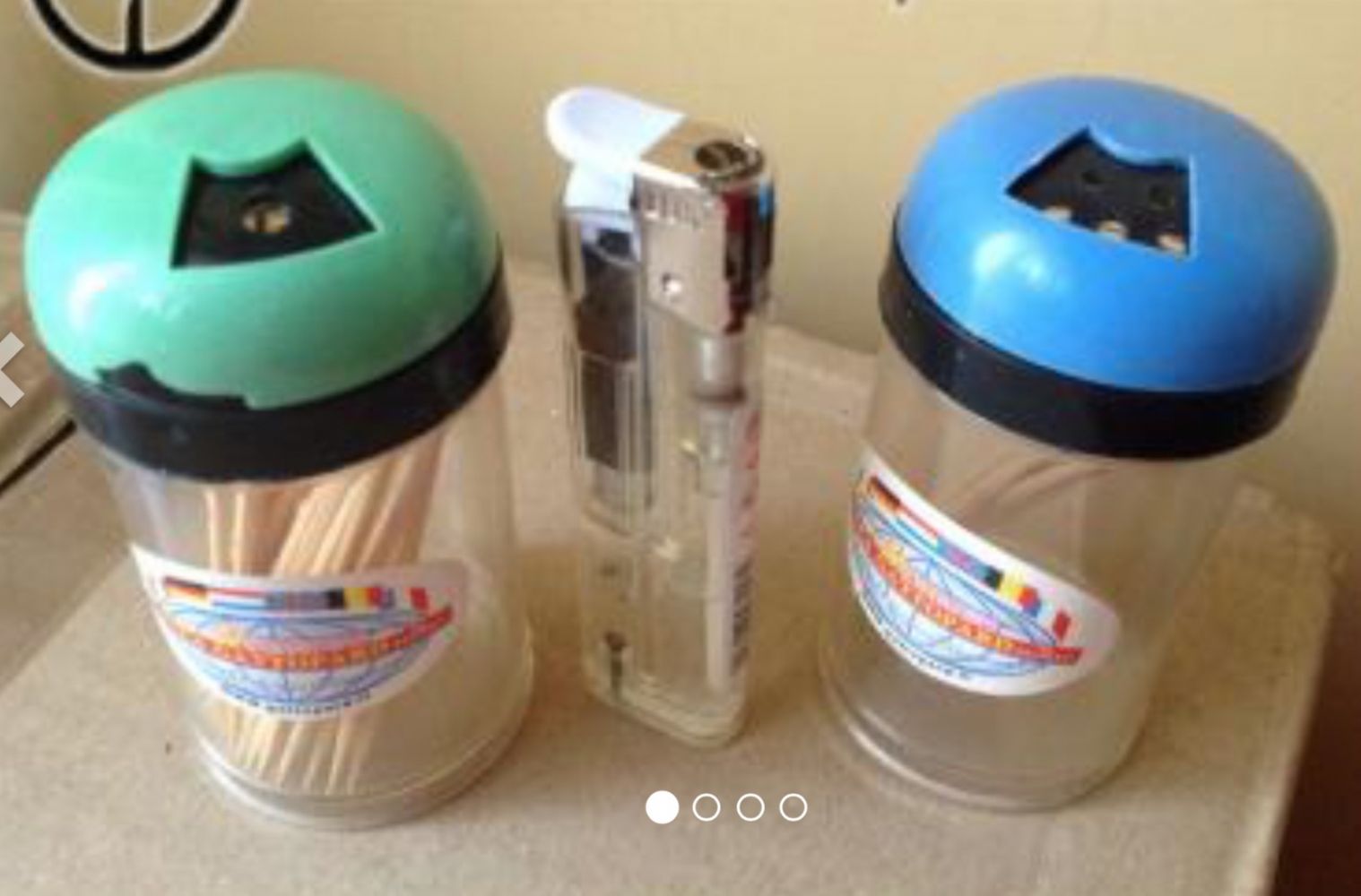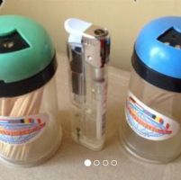 hanno ancora qualche stuzzicadenti dentro ma comunque sono riutilizzabili per altri stuzzicadenti o anche per spezie. ciascuno dei due ha come da foto due possibilità di erogazione, a buco singolo o a più buchi, e si passa dall''una all''altra ruotando il coperchio. sono di plastica, a uno dei due si è tolto un pezzettino del coperchio come da foto ma la cosa non compromette la funzione. Azzurro non più disponibile.
